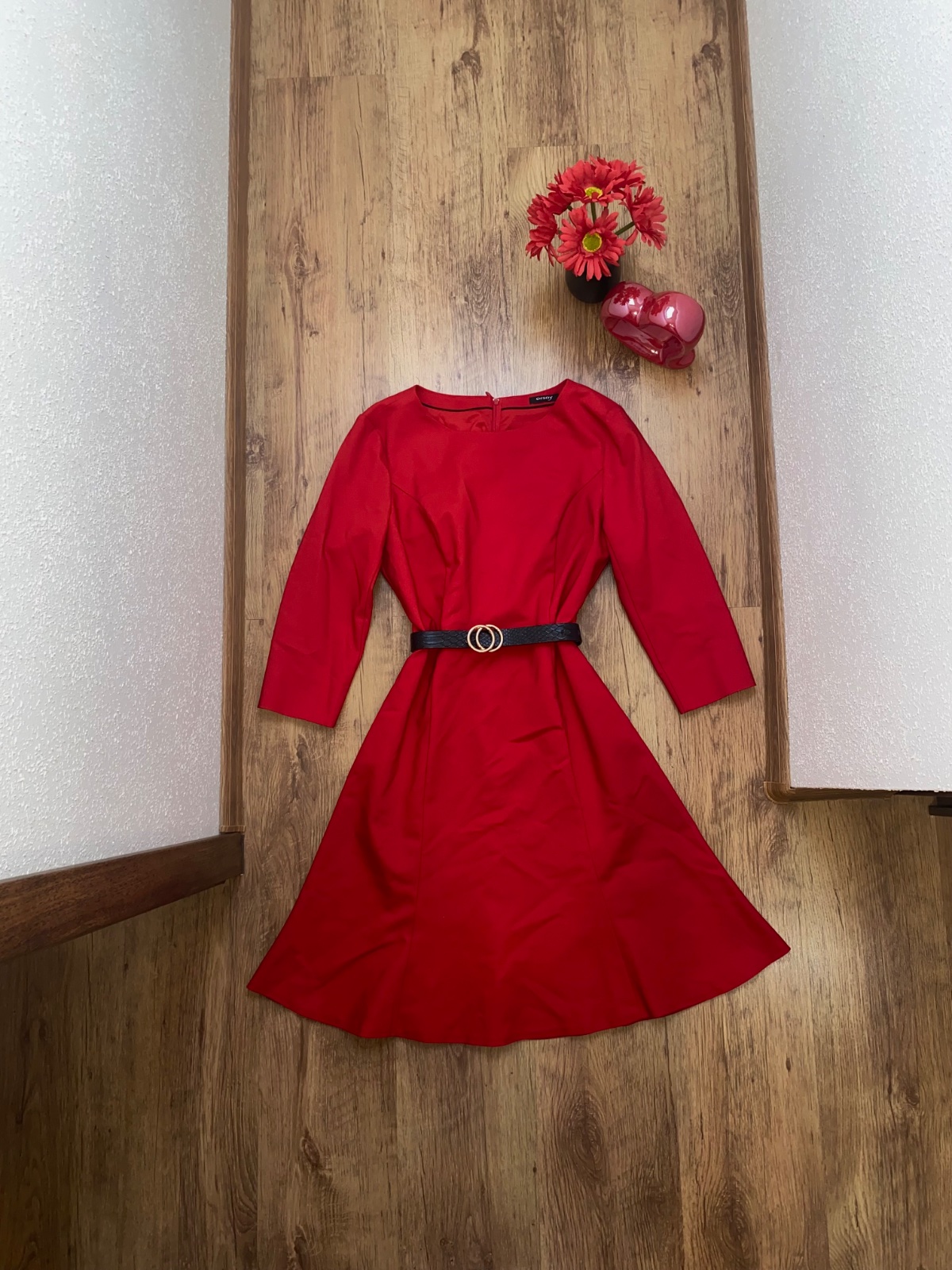 Krásne červené šaty s 3/4 rukávom… sú krásne šité, skvelo sedia… opasok nie je súčasťou šiat