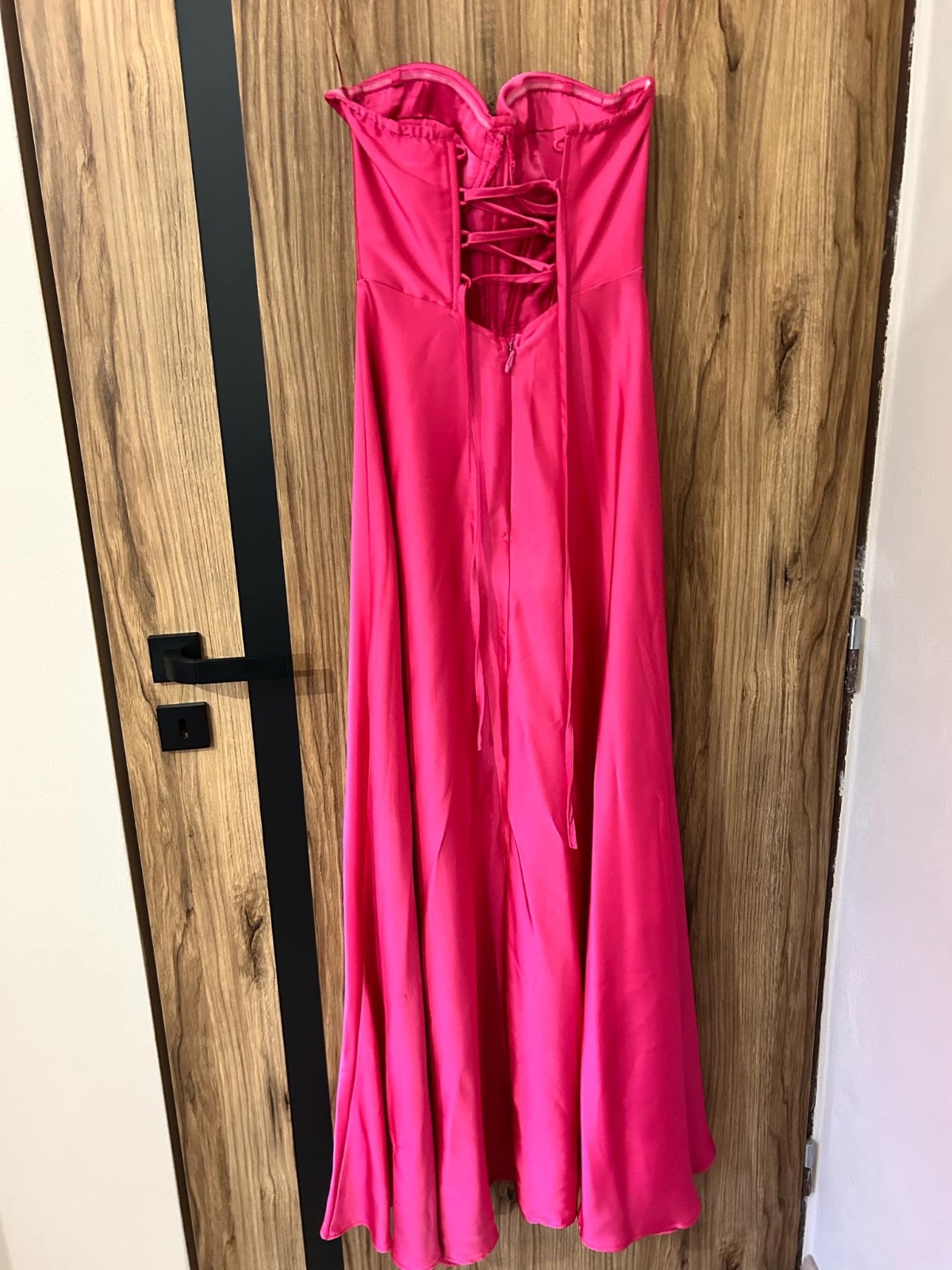 Ružové satenove saty vzadu so snurovackou