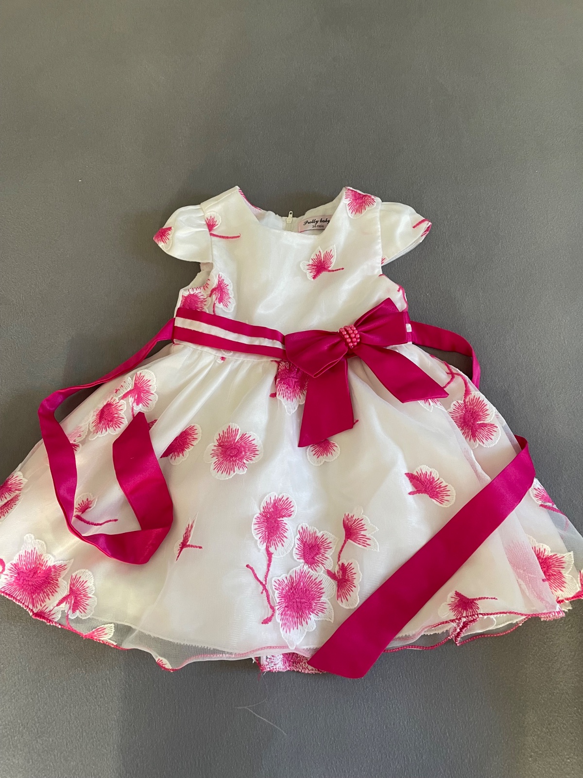 Letne satky znacky Jasper Conran. Su ako nove. Vzadu gombicky. V strede satenova stuzka. Suknicka podsita a ukoncena tylom. Kvetinky ruzove.