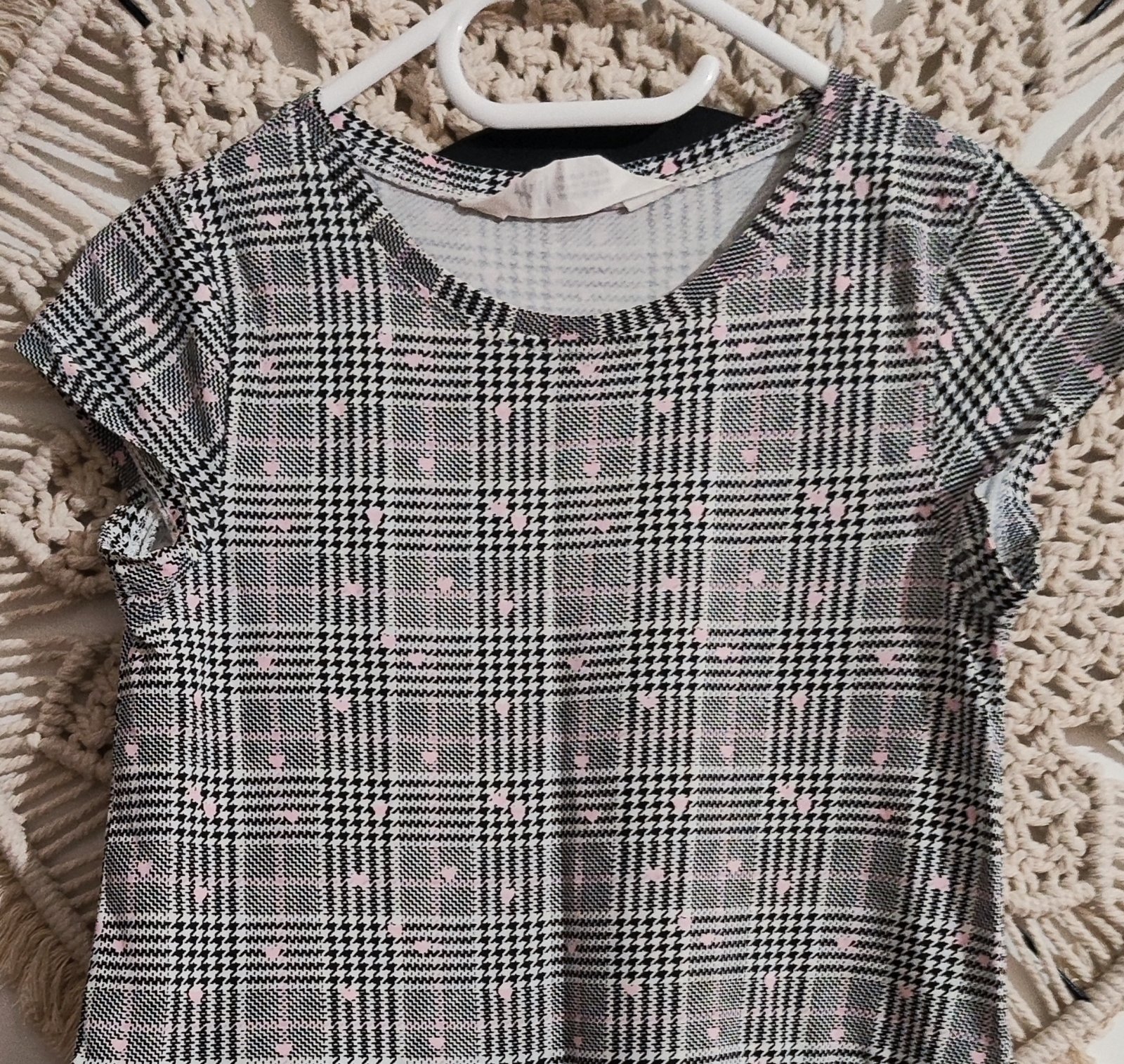 Krátke štrikované šaty, vhodné aj ako predĺžená blúzka. Vhodné na jar alebo jeseň. Veľkosť 110-116.