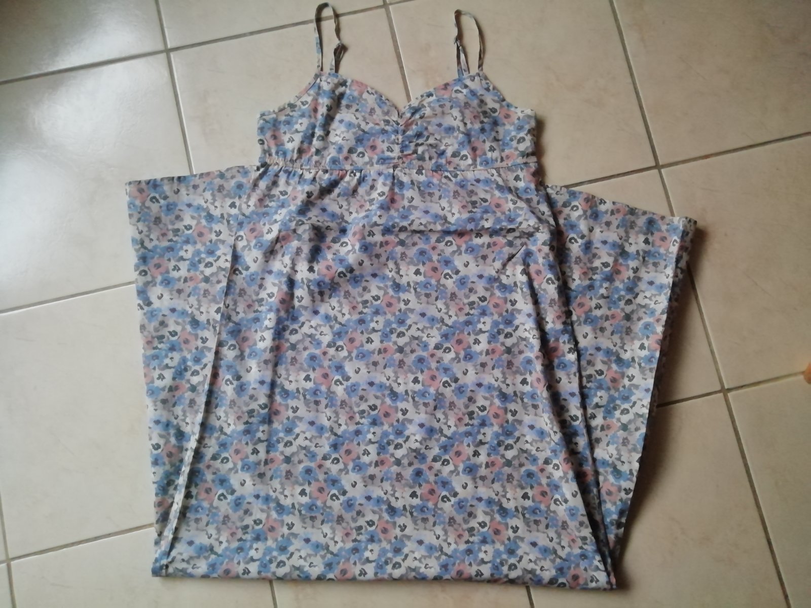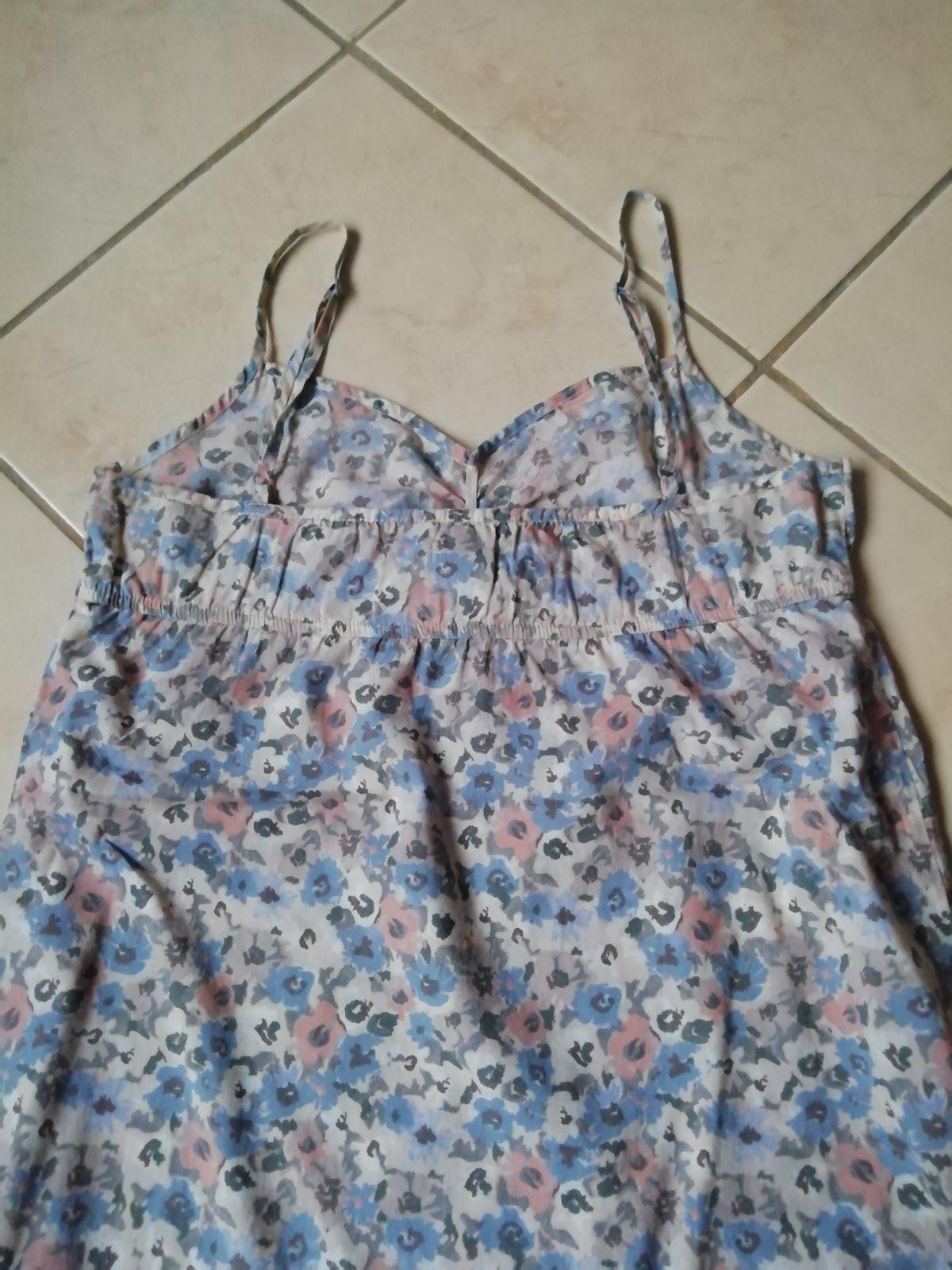 Predám dievčenské / dámske letné dlhé šaty zn. H&M, veľ. 36. Šaty boli veľmi málo nosené, sú vo veľmi dobrom stave, žiadne poškodenia som nenašla. Materiál 100% bavlna, vzor drobné kvietky, ramienka nastaviteľné.