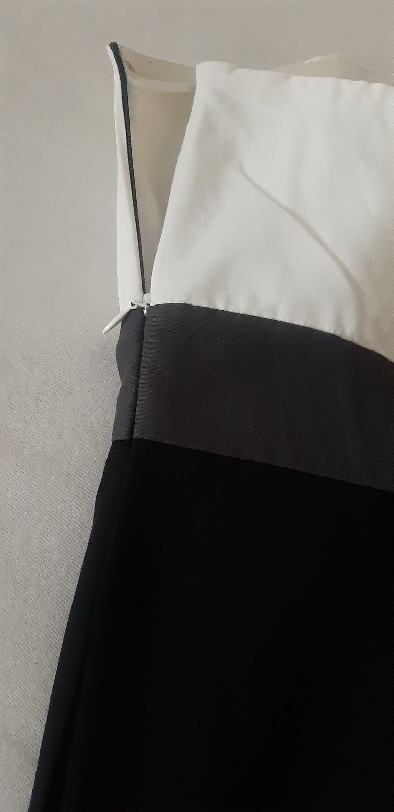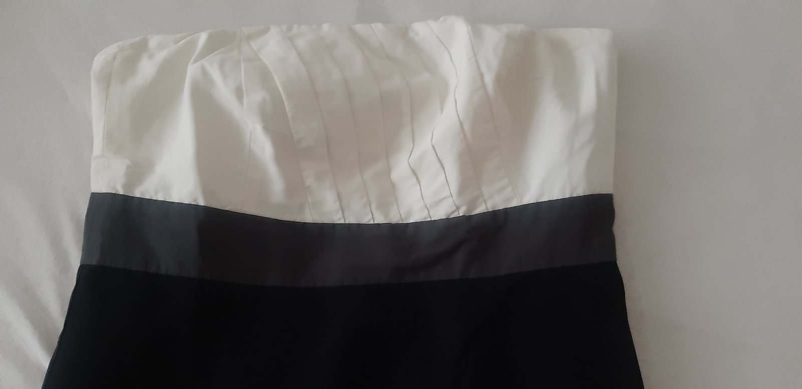 Bielo-čierne saty bez ramienok(daju sa dat priesvitné),na boku zips,samodrziace,párkrat oblecené,velmi pekné