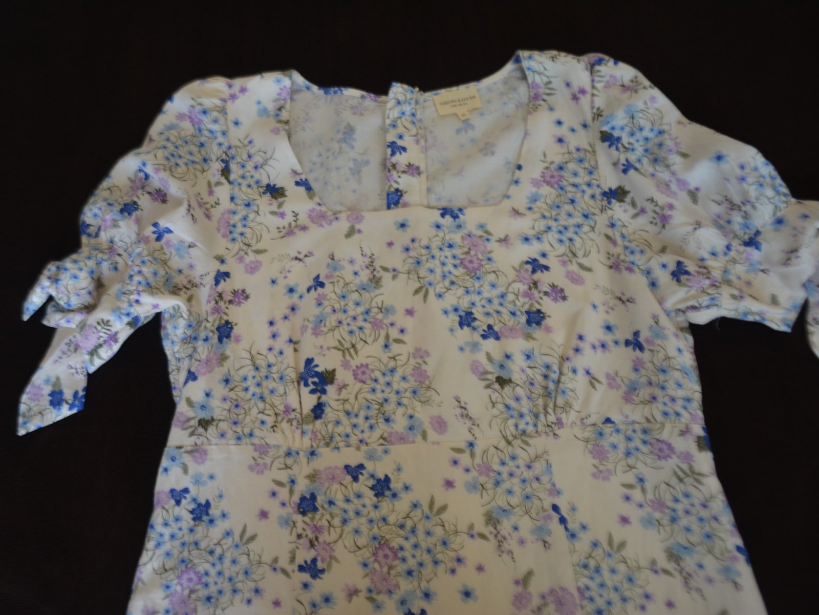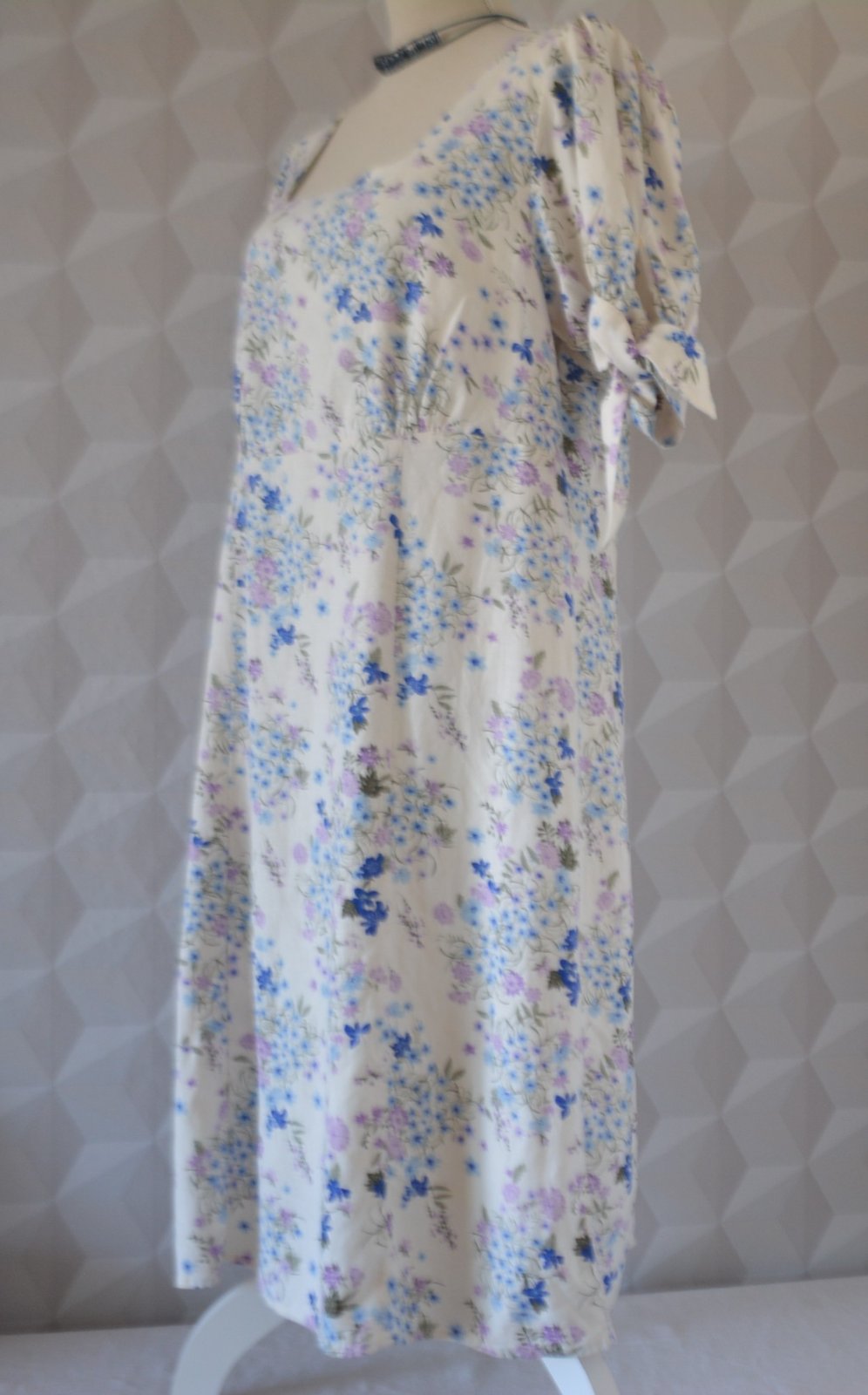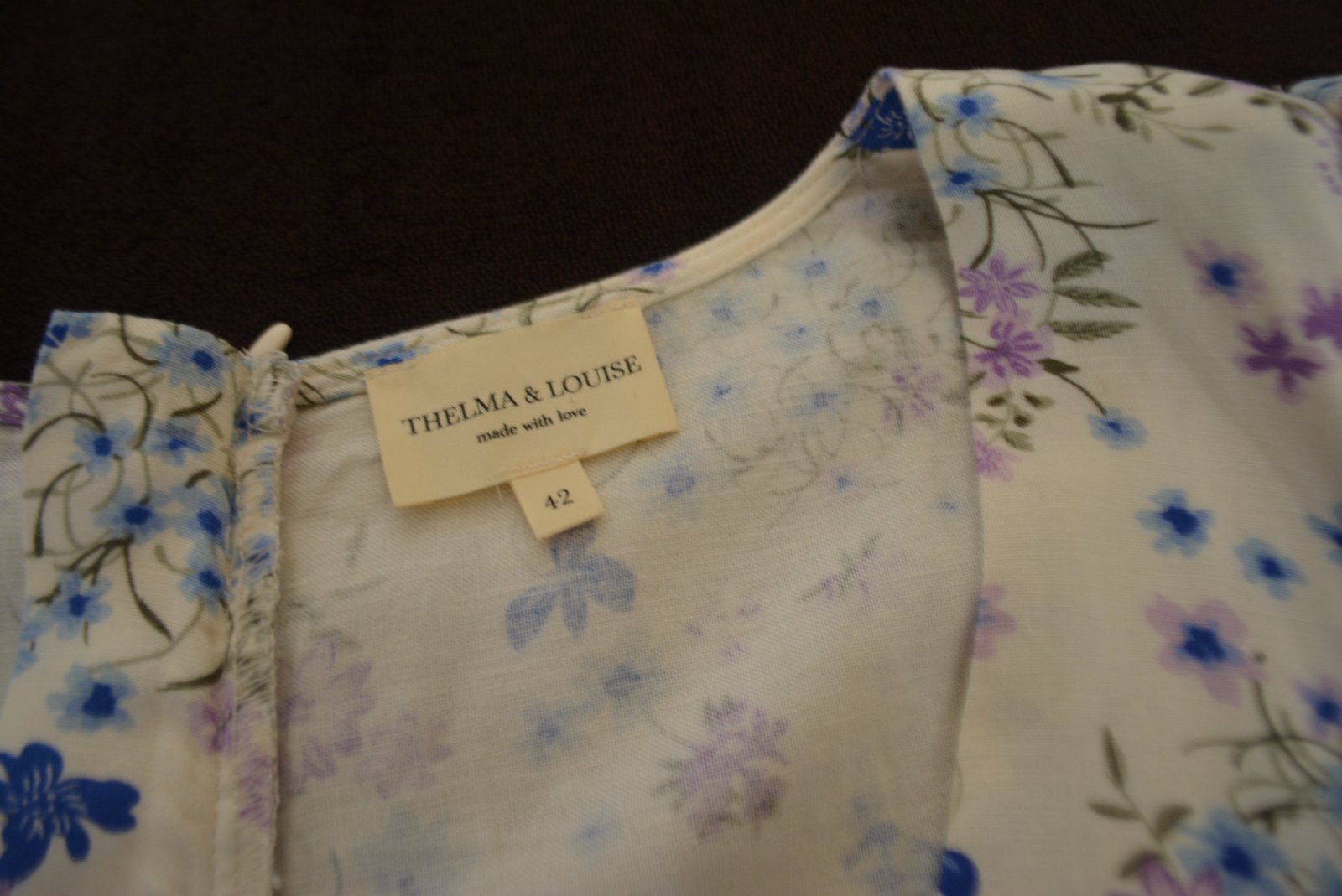 Dámy, zažiarte v týchto nádherných kvetinových šatách. Sú vyrobené z mäkkej ľanovej zmesi, ktorá je príjemne priedušná a zároveň veľmi mäkká. Výstrih je hranatý, zadná časť má skrytý zips a rukávy sú zdobené malými mašličkami. Zažite slávnostné leto v tomto krásnom kúsku od Thelma & Louise!