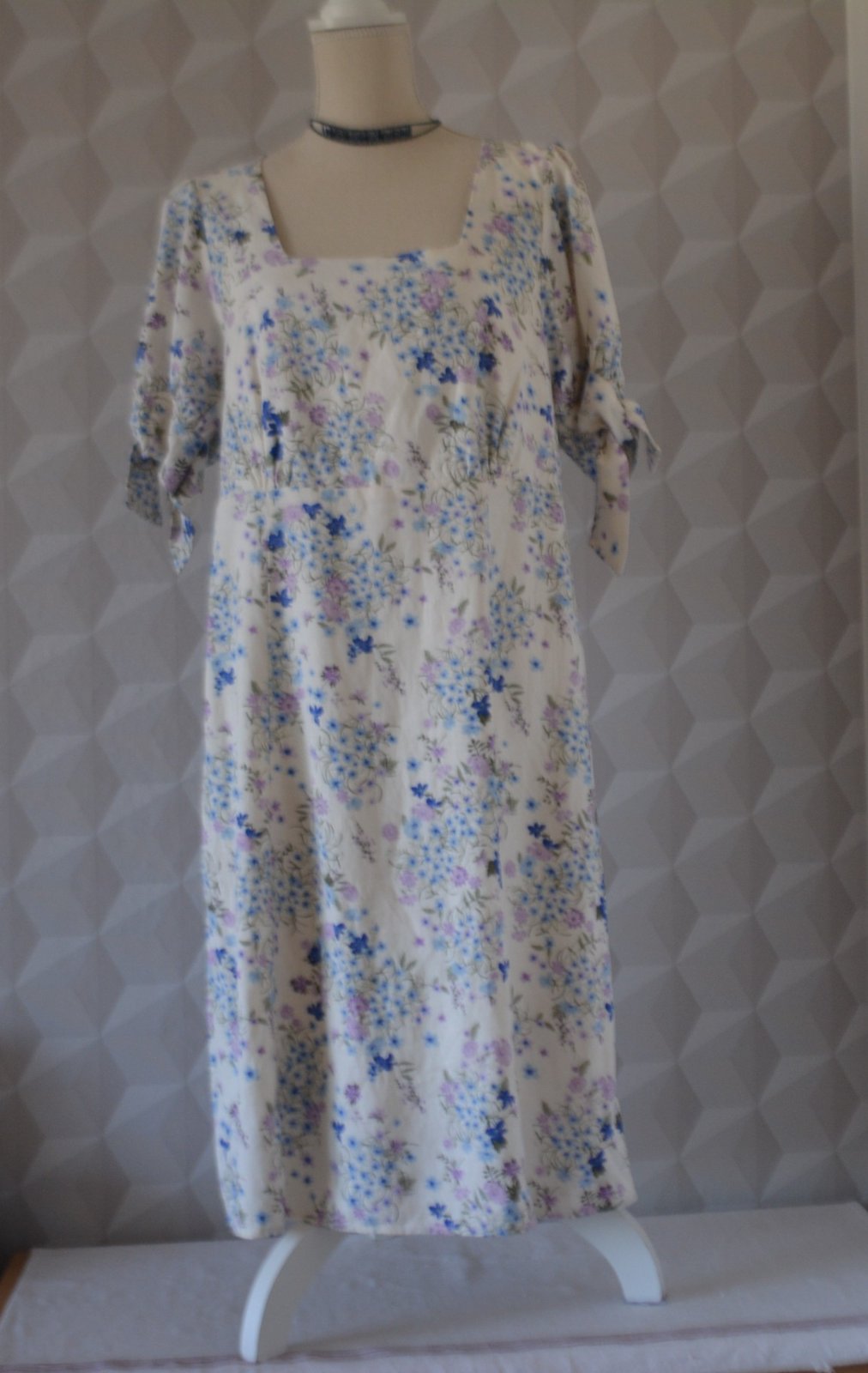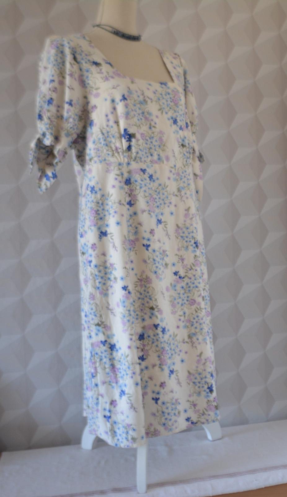 Krásne dámske šaty z ľanovej zmesi, veľ. L - rozmery: dlžka 100cm, pod pazuchami 2x53cm, pás do 2x45cm