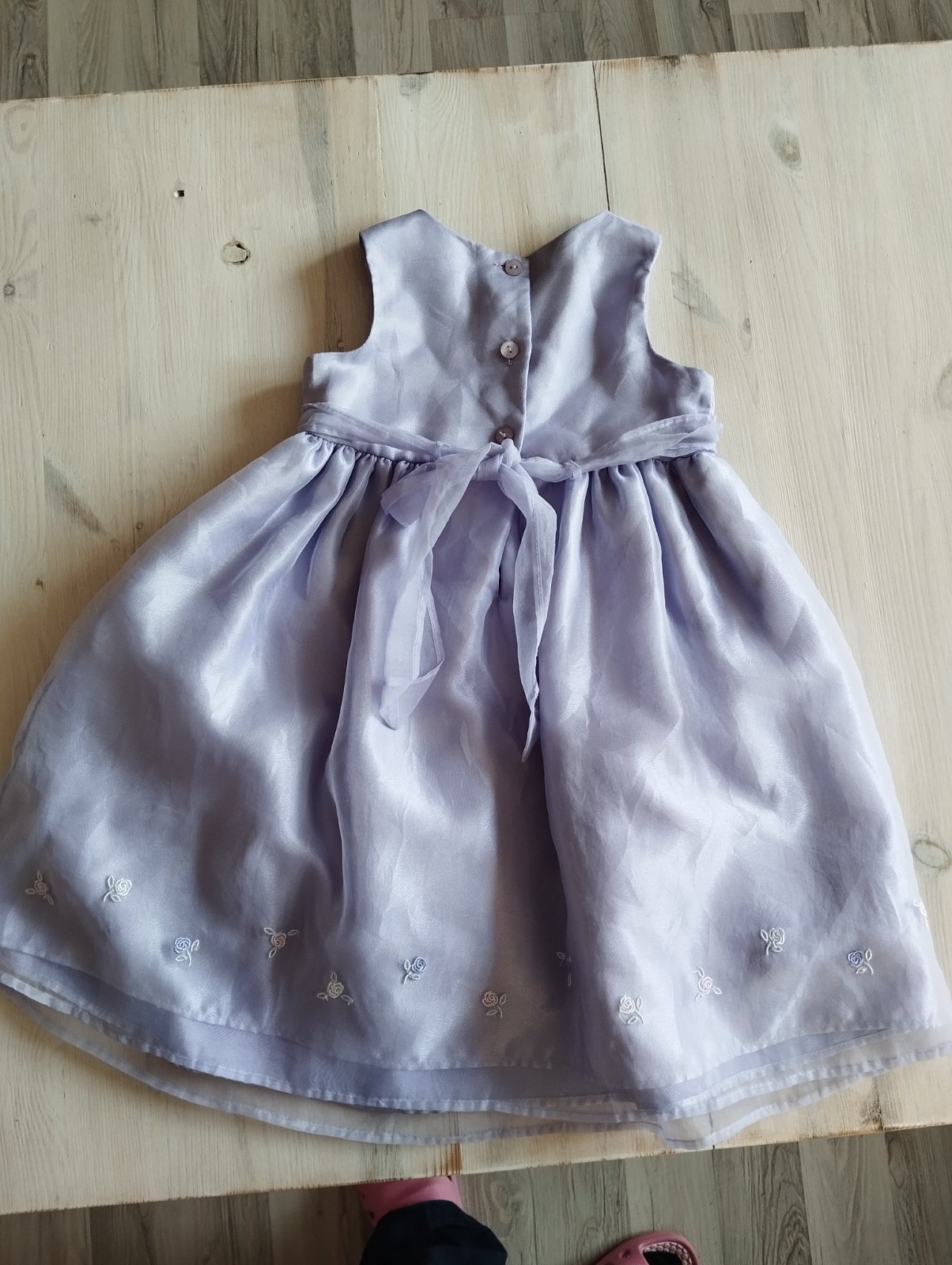 Slávnostné šatočky v super stave. Veľkosť písaná na tri roky. Dĺžka od výstrihu po spodok 55 cm, sukňa 40 cm, od ramena po spodok 60 cm. Obvod pod pazuchami 2x26 cm. *K012*