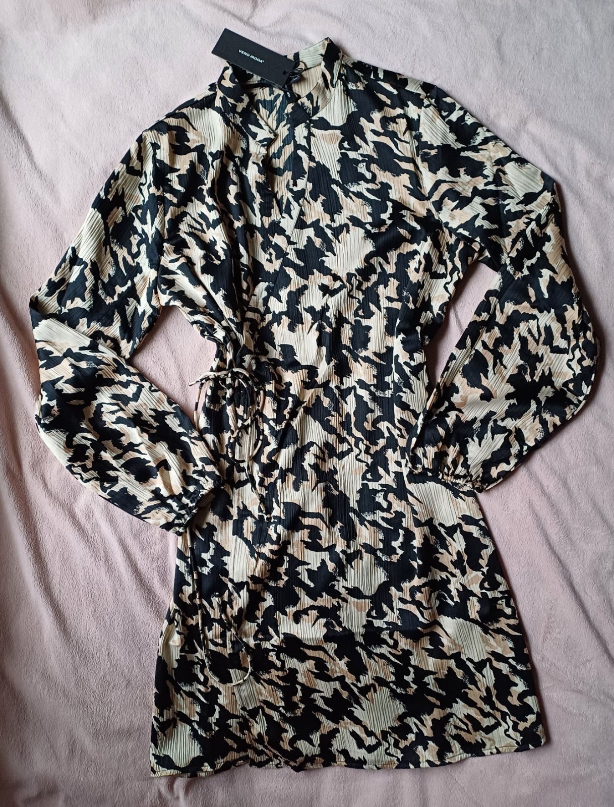 SkladomKrásne zavinovacie šaty zn.Vero Moda vo veľkosti M,ale nakoľko sú zavinovacie možno budú sedieť aj na L.Rukávy s gumičkou na konci.Dĺžka je cca po stehná,v prípade záujmu premeriam. Úplne nové s visačkou,nesadla mi veľkosť.Vhodné na bežné aj príležitostné nosenie.PC 44,99€