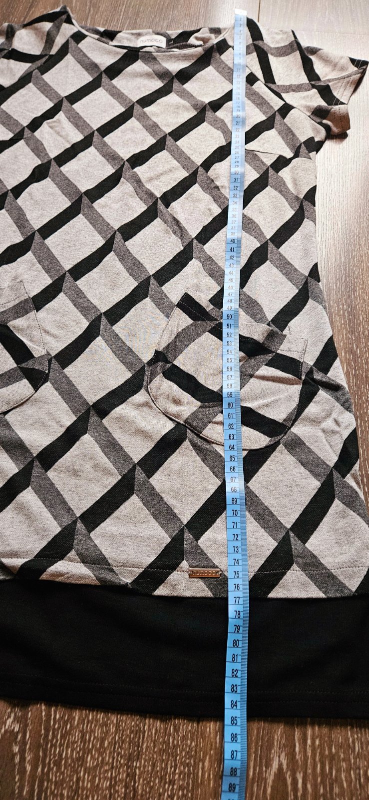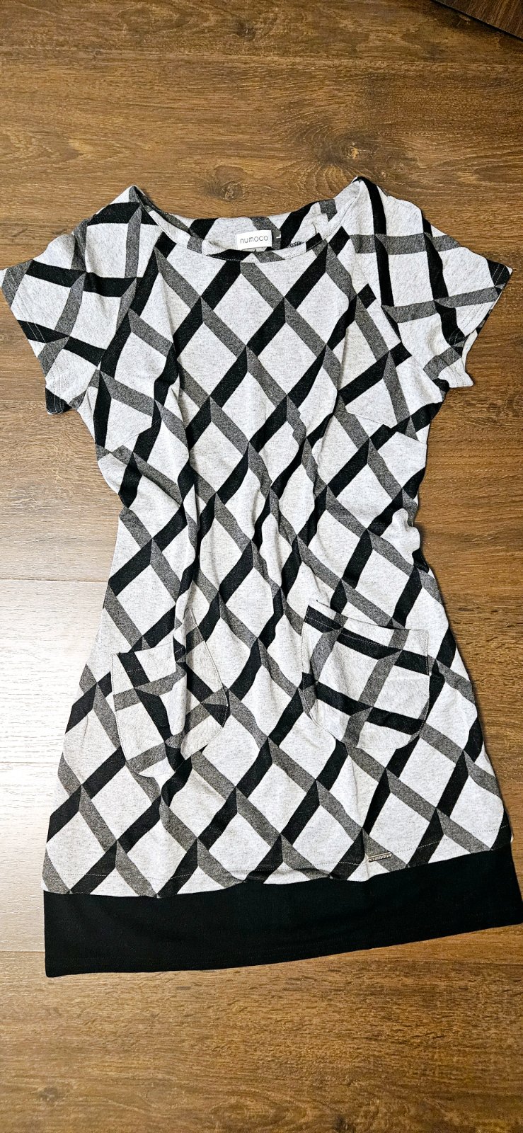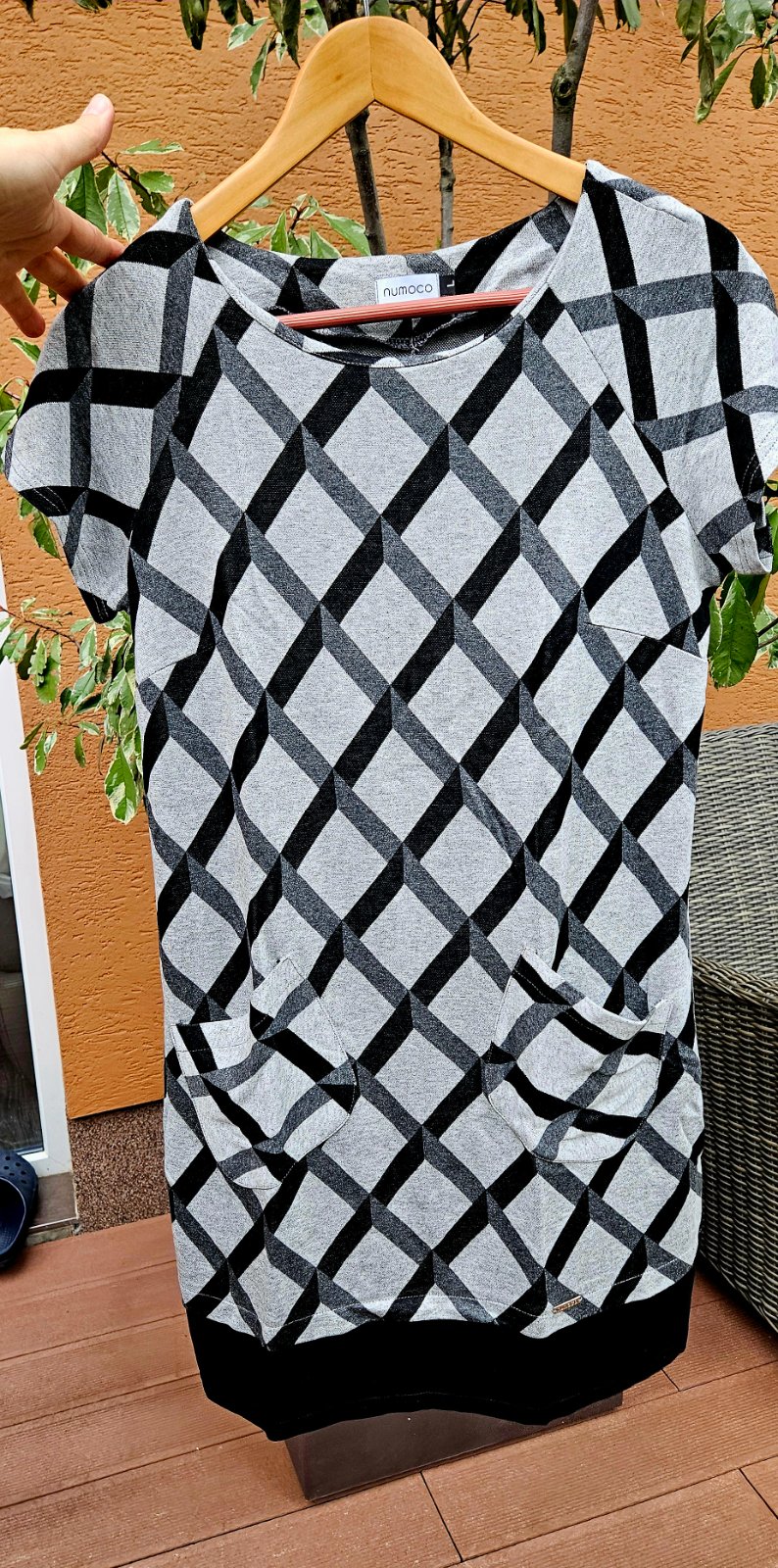 Kratke saty velkost L, kratke rukavy. S leginami alebo hrubsimi pancuchami su vhodne aj na chladnejsie pocasie. Dve vrecka vpredu. 100% stav bez zavad a poskodeni. Nove, nenosene. Rozmery a material na foto. Cena 7 Eur