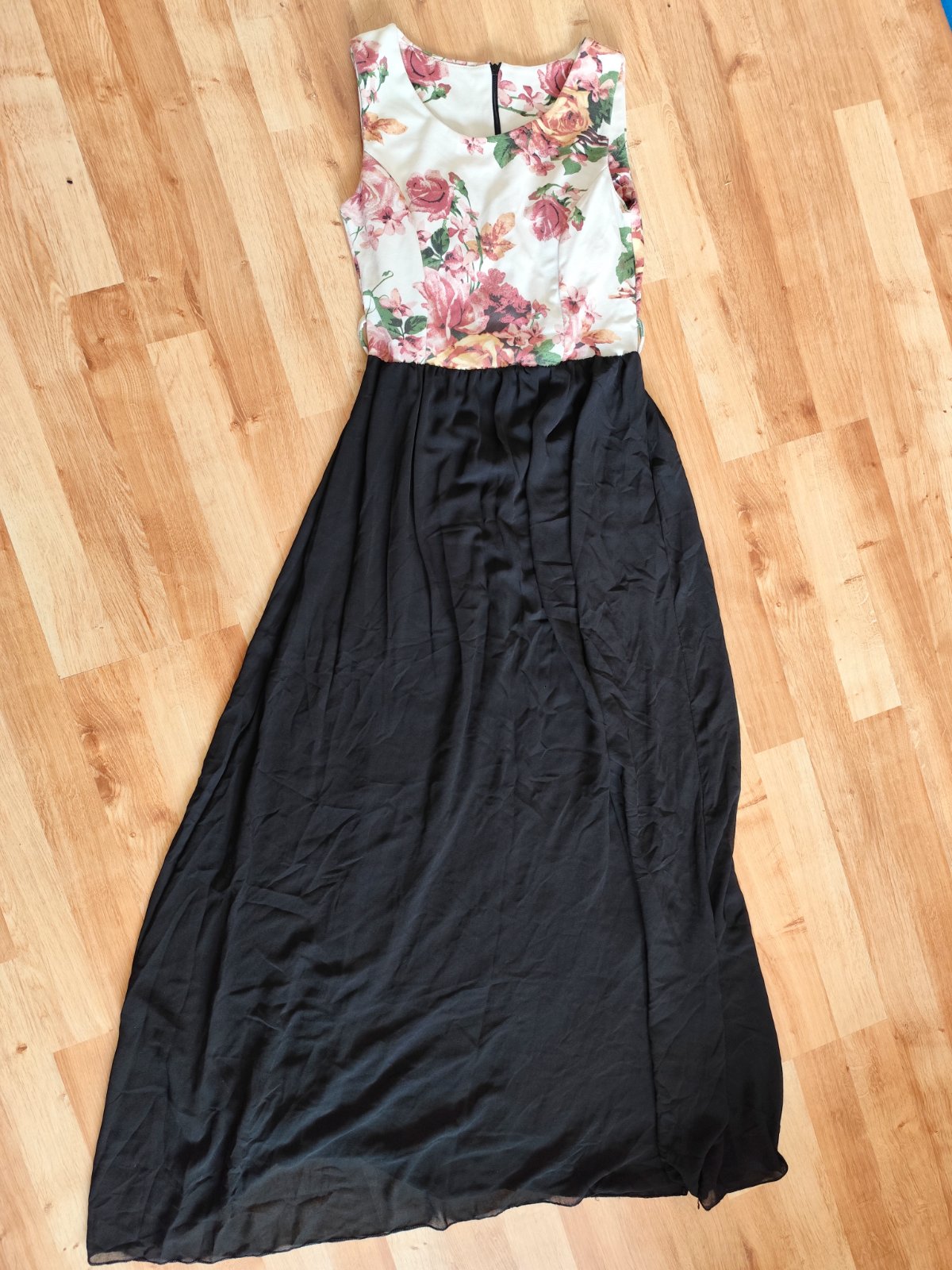 Dámske dlhé šaty. Veľkosť je neudaná no rozmerovo sedia na S. Materiál je 93% polyester a 7% elastan. Sú v skvelom stave bez poškodenia. Vzadu sú na zips.