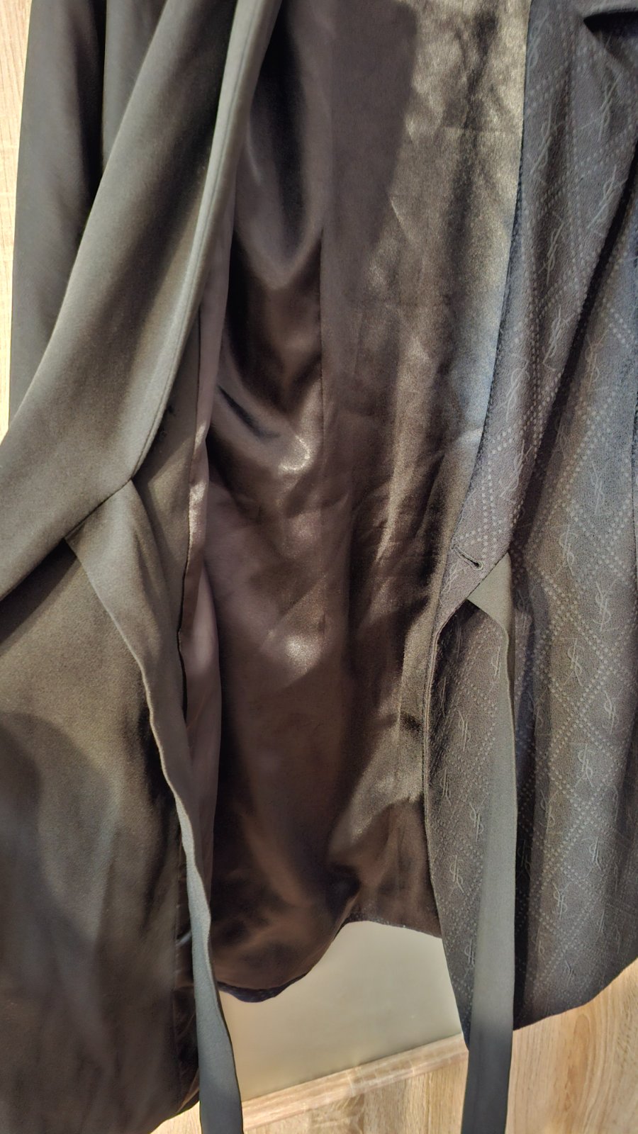 Teplákoch šatky čiernej farby s čipkovaným nápisom. Šatky sú v peknom nosenom stave. Majú iba jednu chybičku na rukáve je bordovy fľak (možno od sava). Tak som ich kúpila. Rozmery OH 2x 56cm, OB 2x...