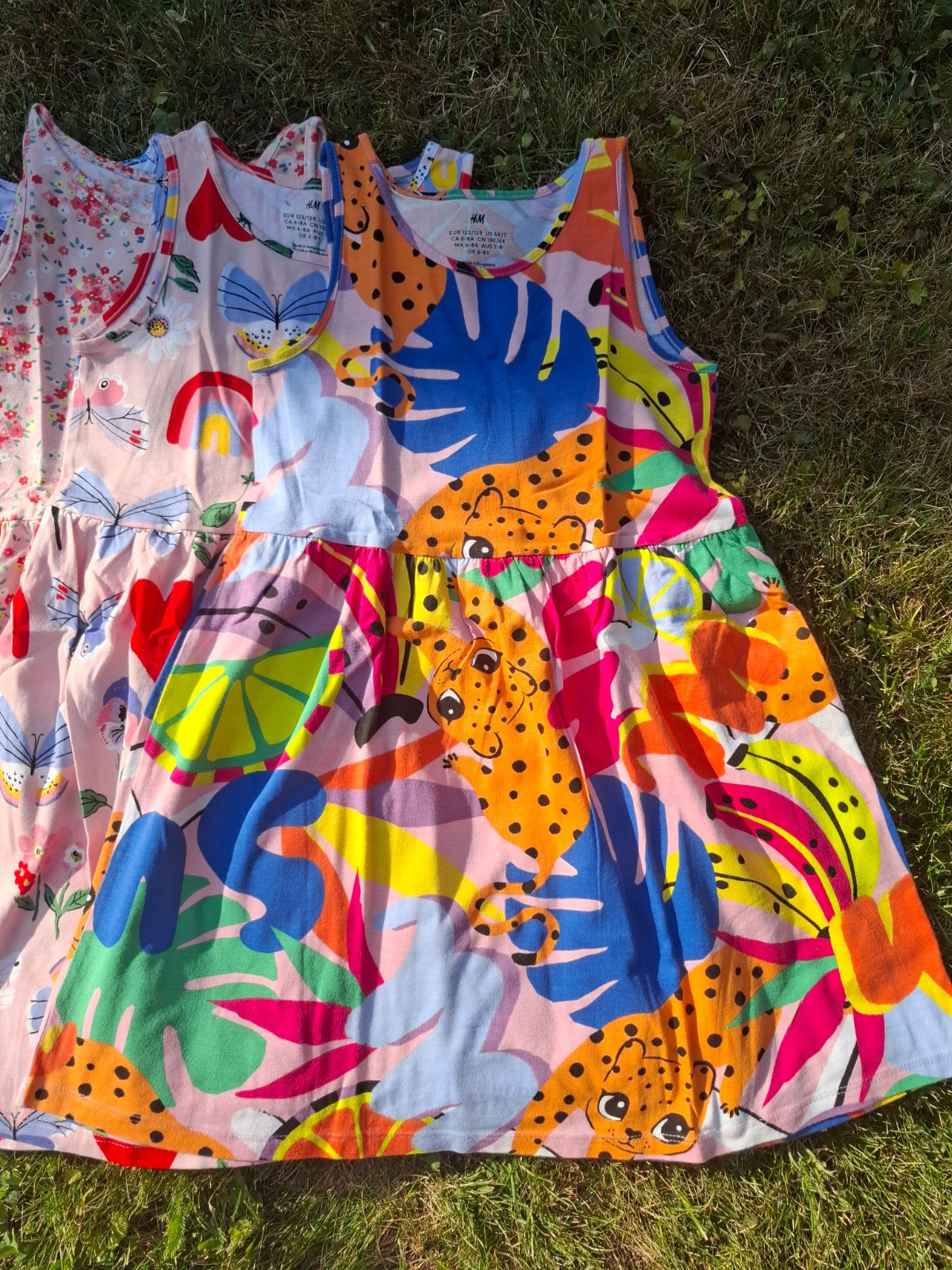 Krasne bavlnené farebné letné šaty pre dievčatko, všetky veľkosť 122/128, zn. H&M