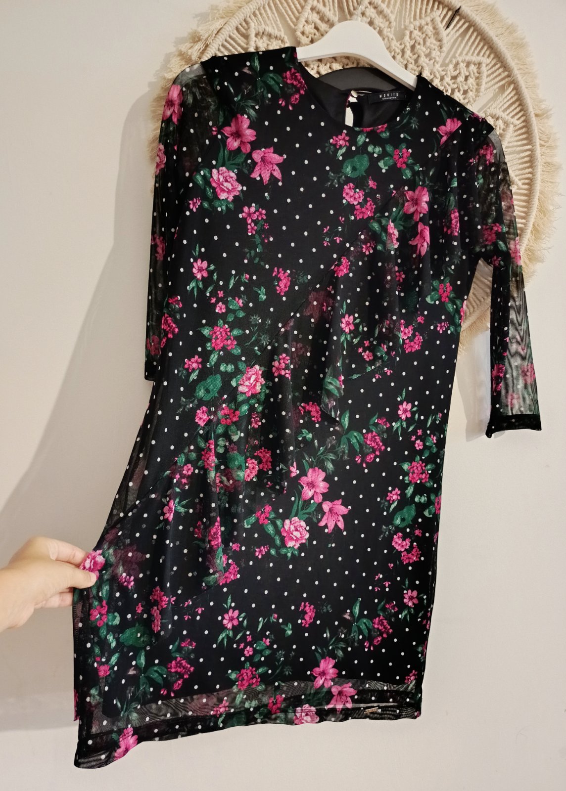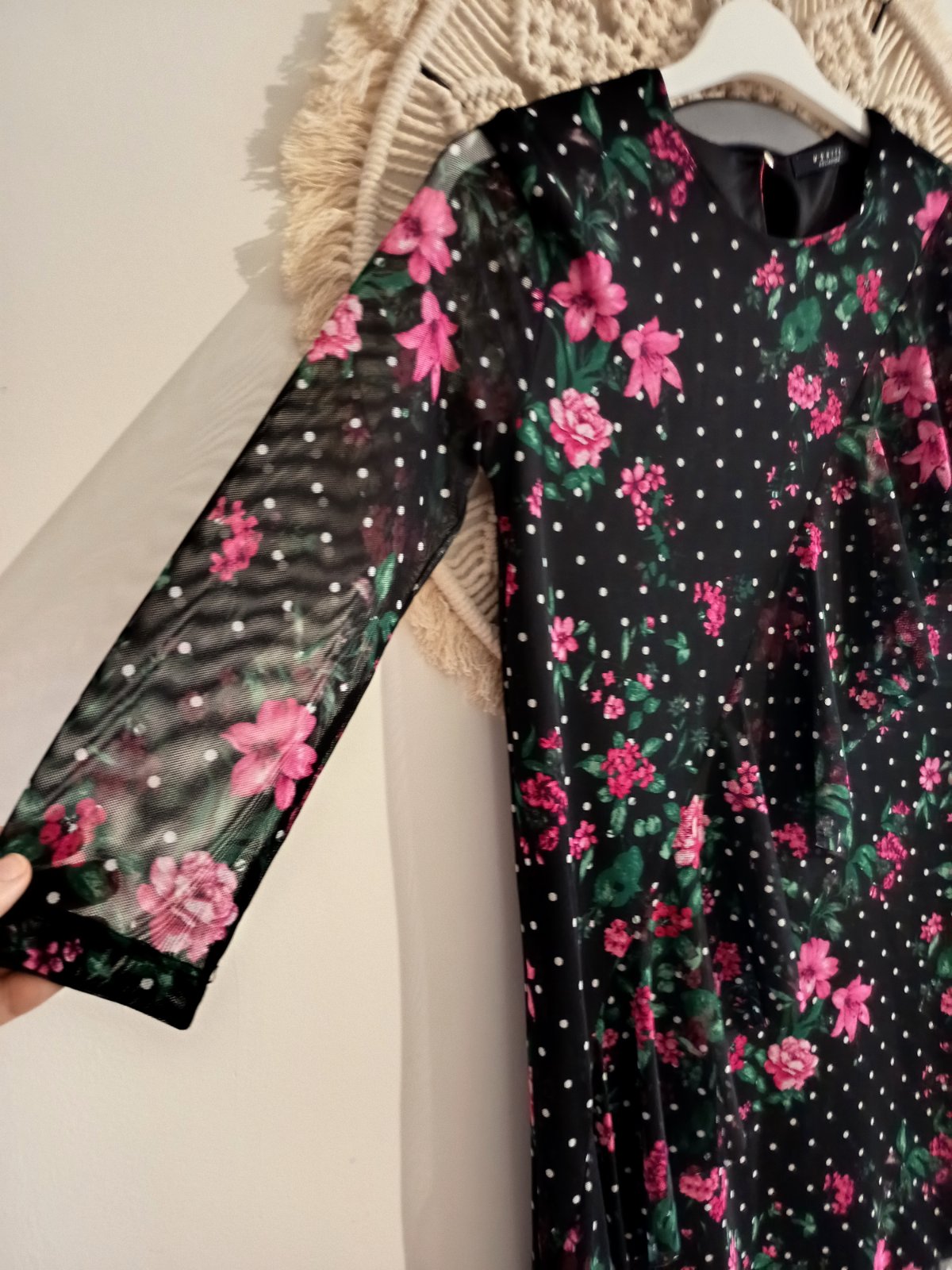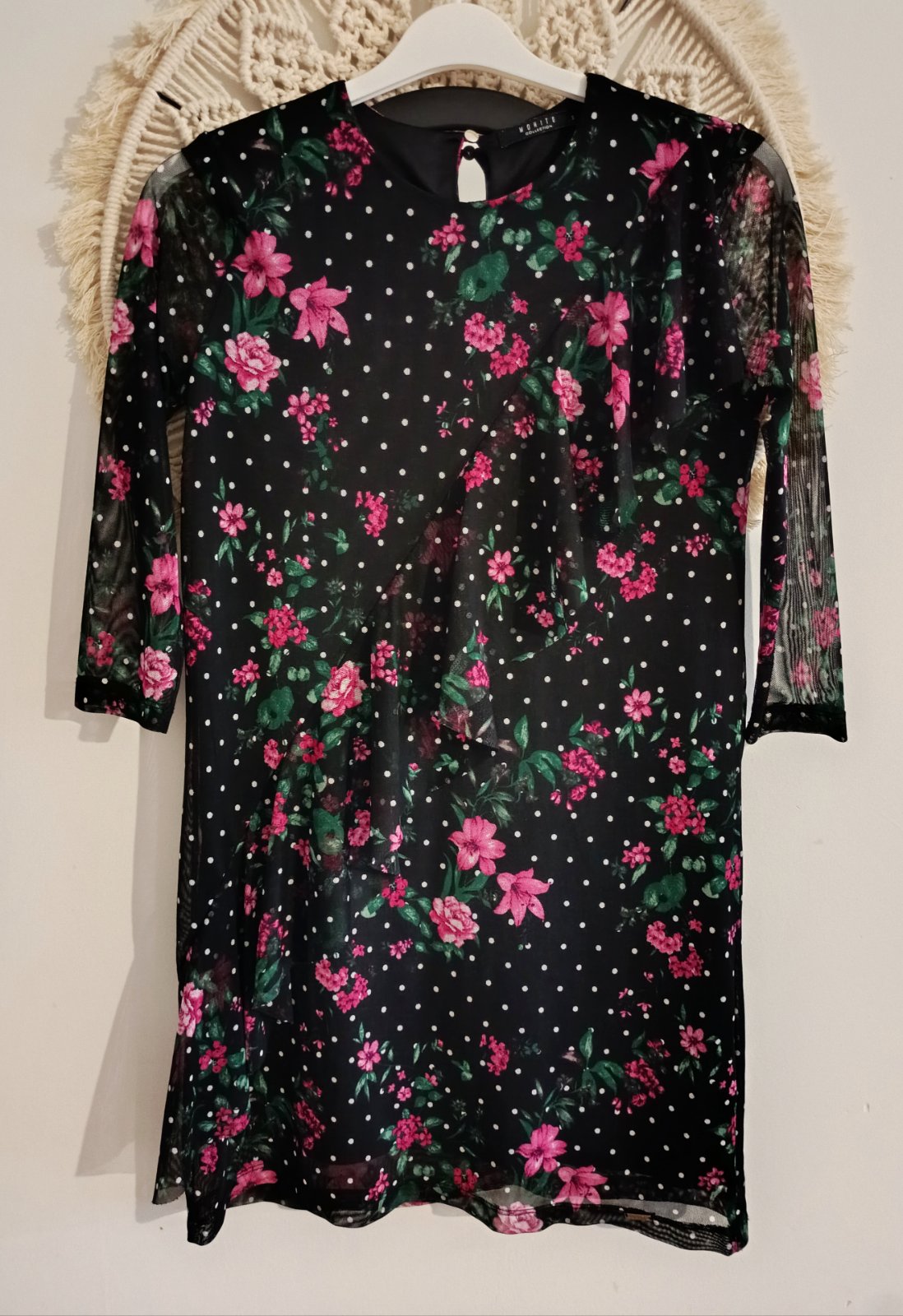 Bodkované šaty s golierikom, voľný strih.Šaty vhodné na viaceré ročné obdobia. Dl 87,šírka 47 48,v,kr8