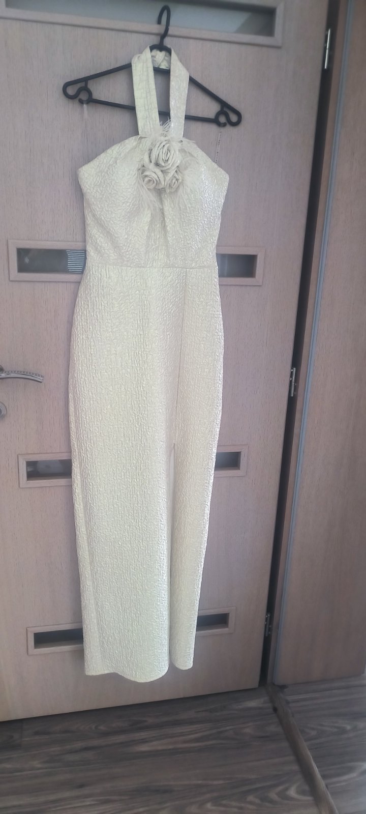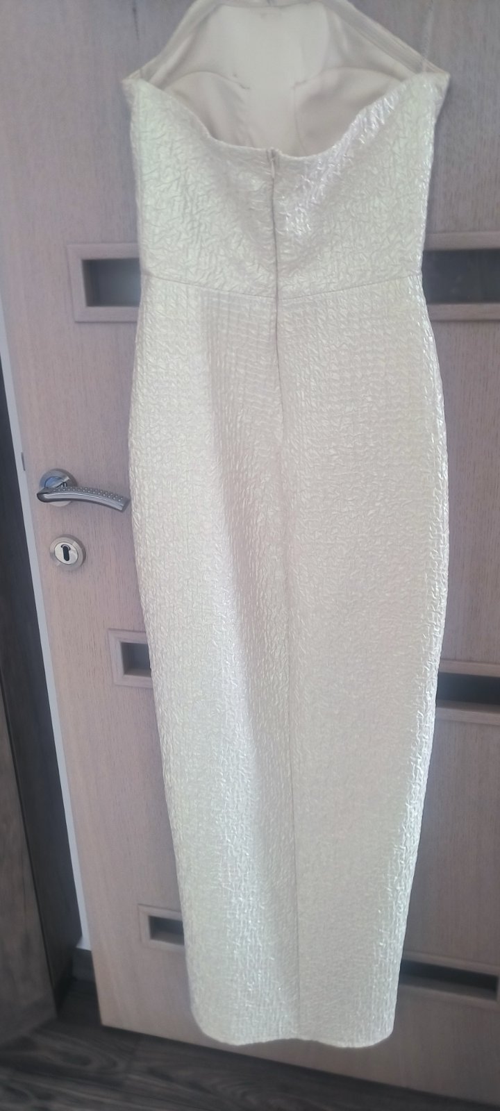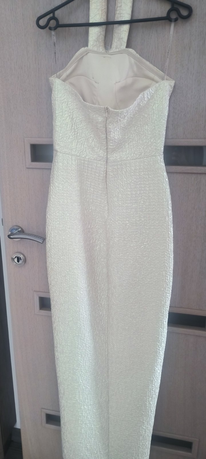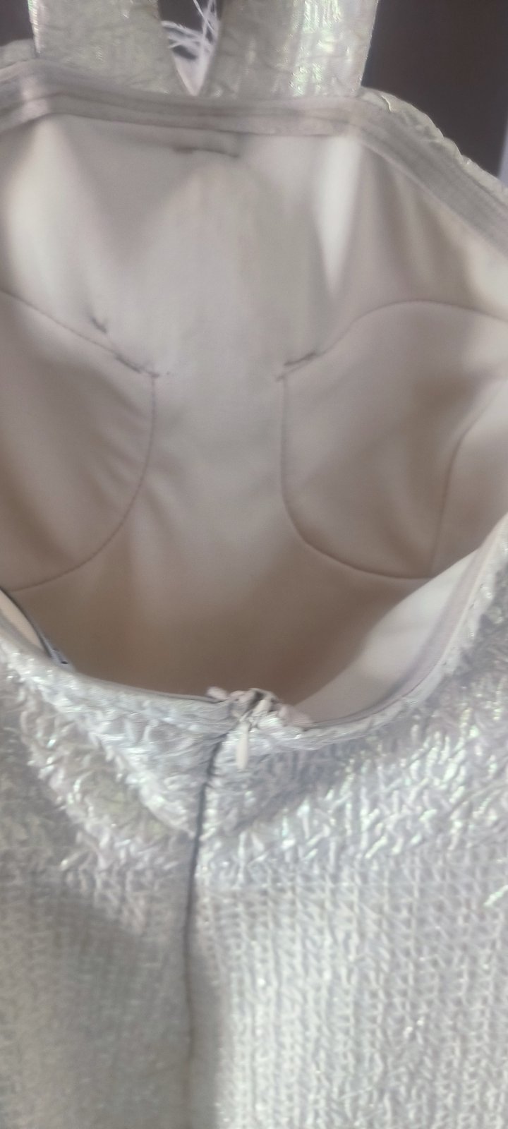 V top stave, oblečené 1x. Boli mnou kupované nové z butiku. Zapínajú sa gumičkami na gombiky okolo krku, zips na chrbte, vystužené v okolí pŕs, je k nim aj opasok. Pôvodná cena: 120 eur.
