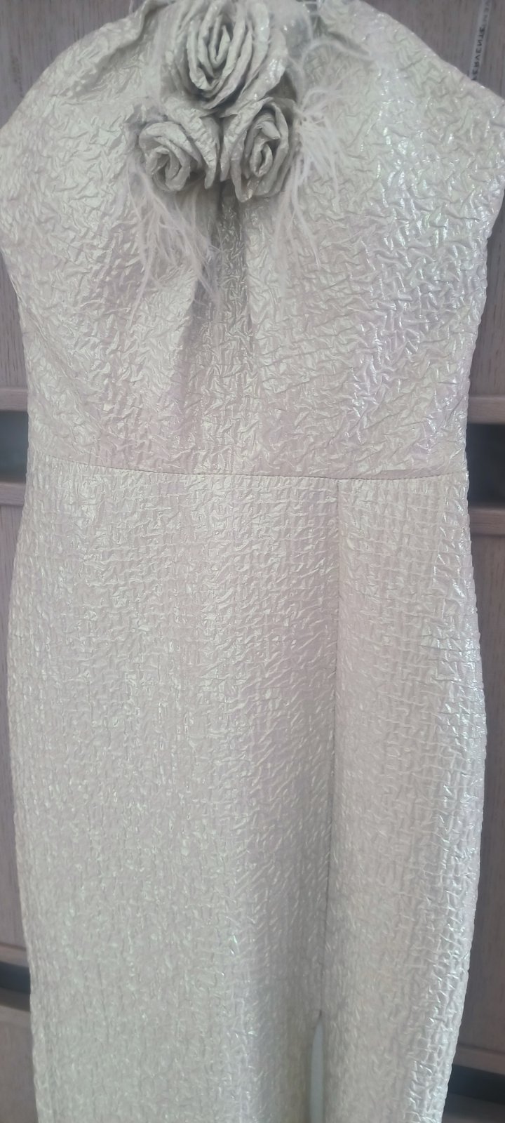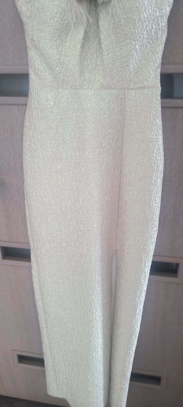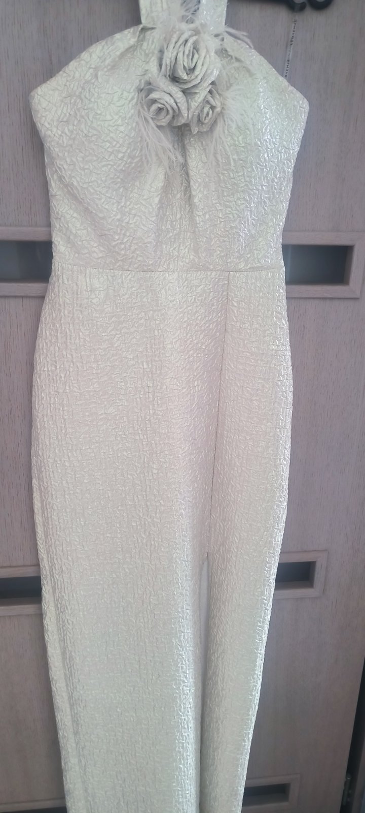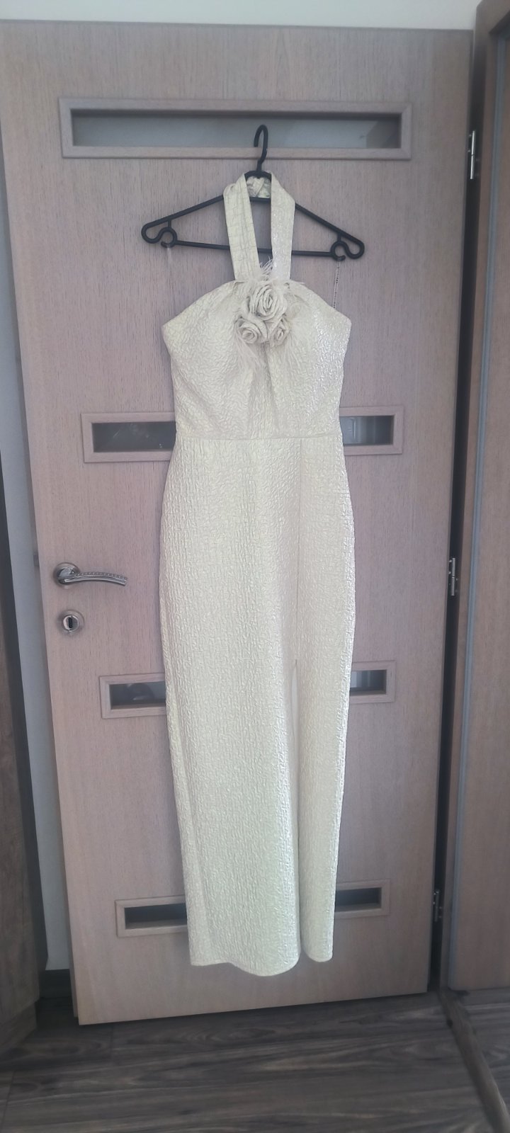 V top stave, oblečené 1x. Boli mnou kupované nové z butiku. Zapínajú sa gumičkami na gombiky okolo krku, zips na chrbte, vystužené v okolí pŕs, je k nim aj opasok. Pôvodná cena: 120 eur.