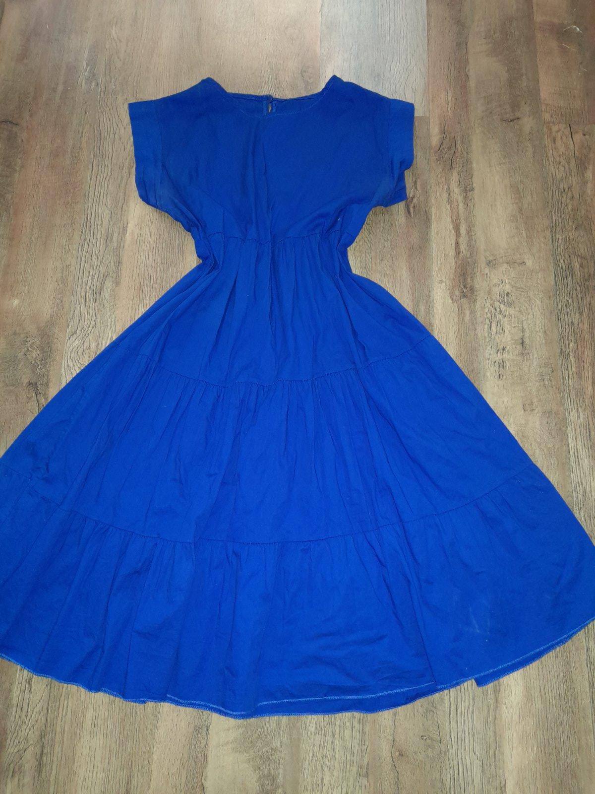 Predám pekne volanove šaty, nosené,v super stave. Veľkosť nieje uvedená,odhadom M. Farba je kráľovská modrá. Rozširujúci sa strih.