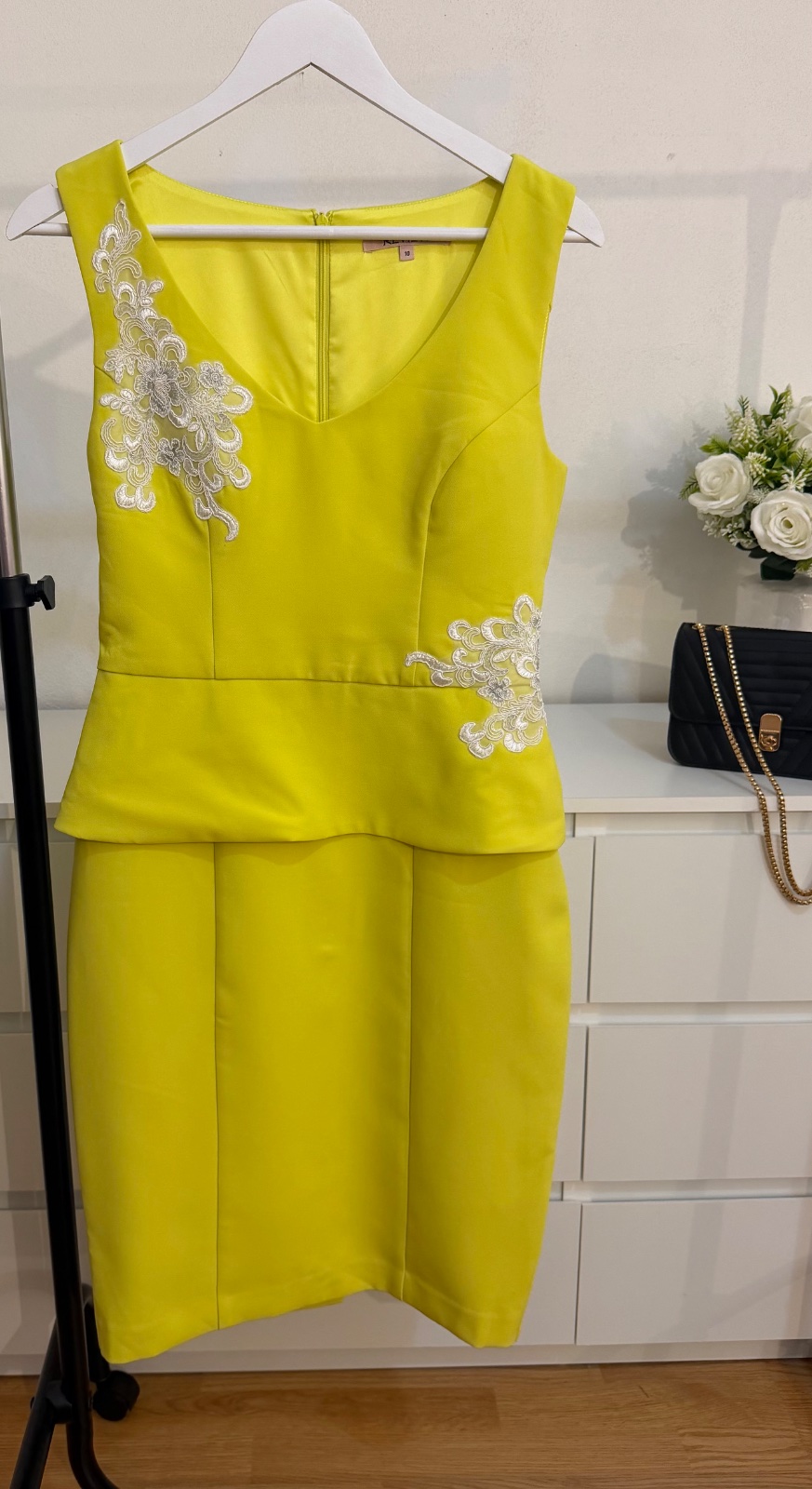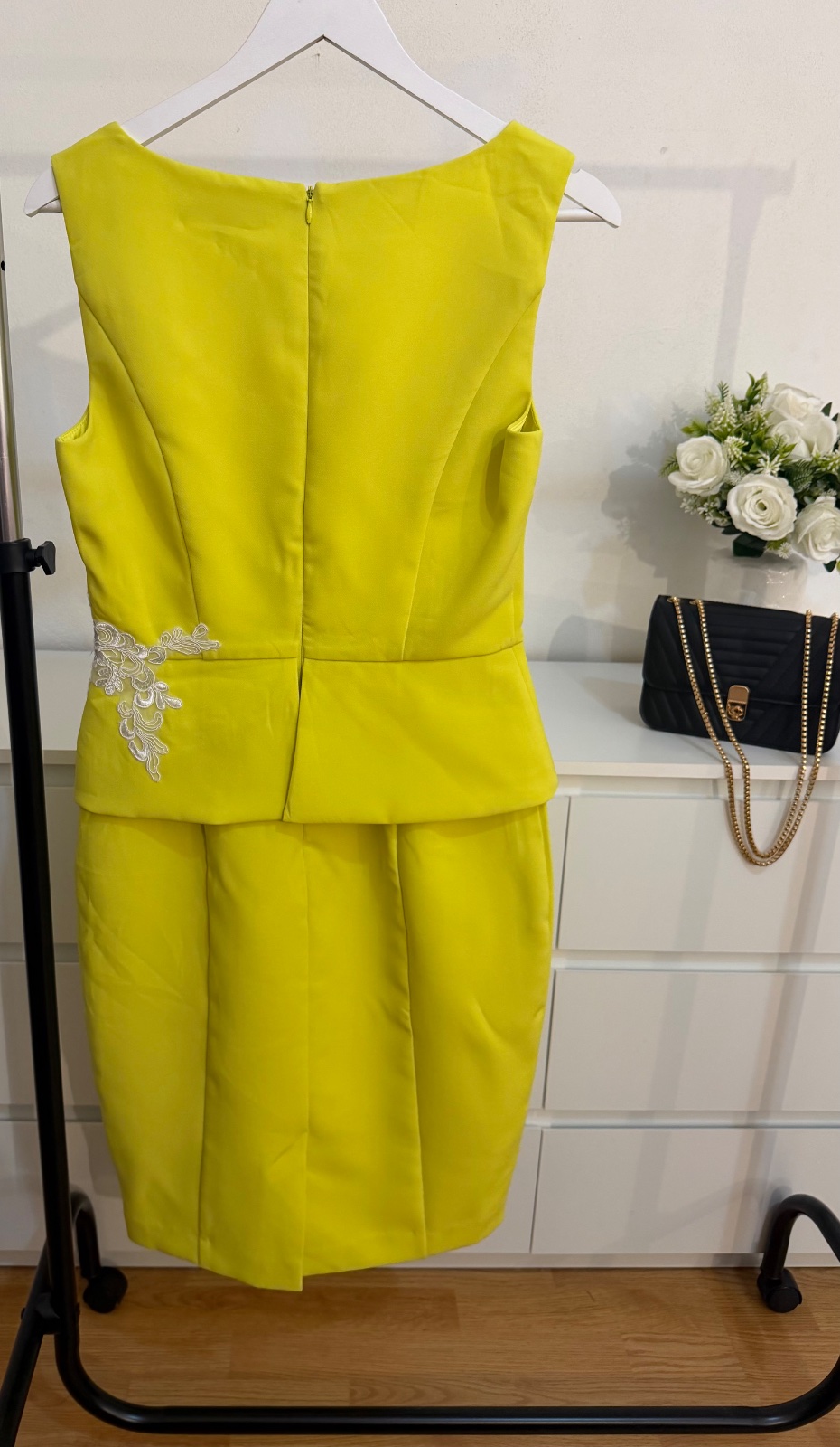 Kvalitný pevnejší materiál krásne drží tvar a pôsobí veľmi elegantne. Zapínanie na zips vzadu.