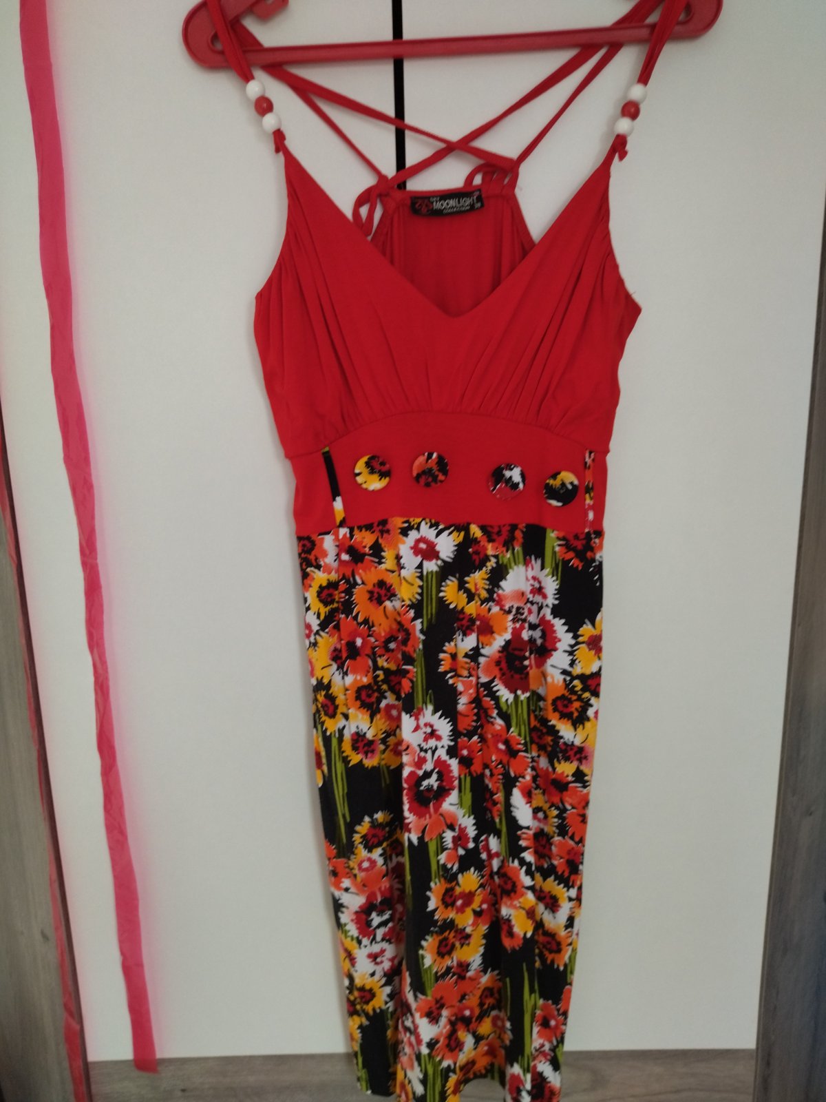 krásne farebné letné kvalitné šaty kupované v talianskej predajni, viacero možností viazania ramienok, nad kolená, v prípade potreby premeriam, pri odbere viac vecí pošta zdarma, ďakujem