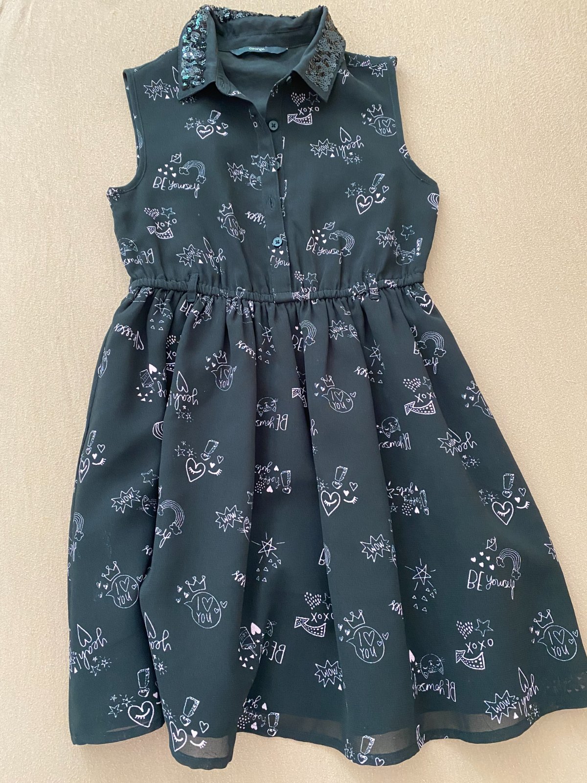 Ľahké šatočky bez rukávov, s podšívkou, nazberkanou sukničkou a flitrovým límčekom. Celková dĺžka je vzadu 68cm, suknička má40cm.