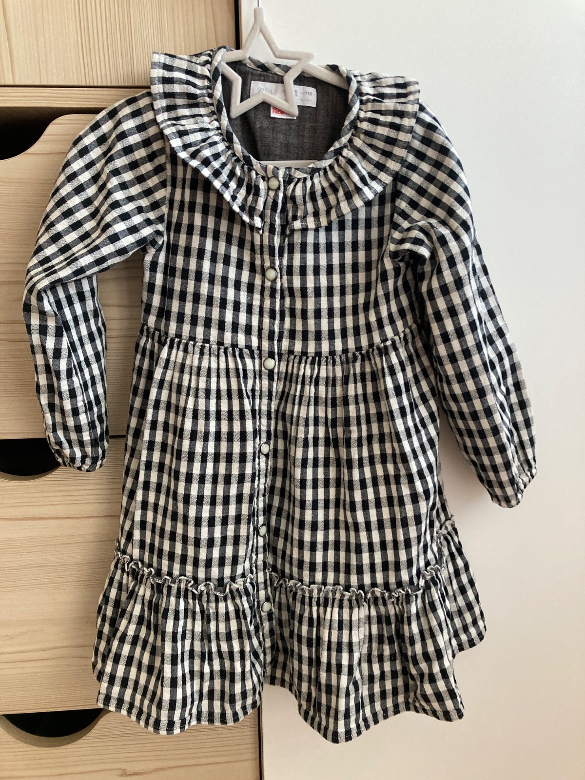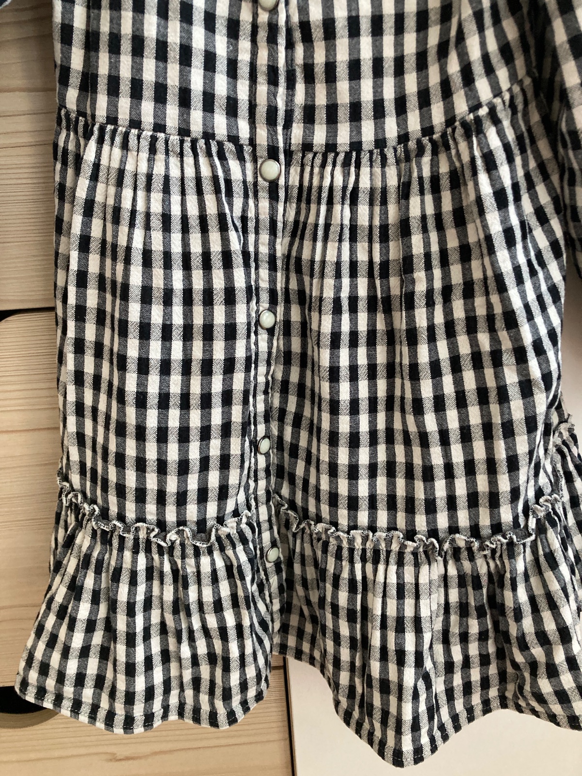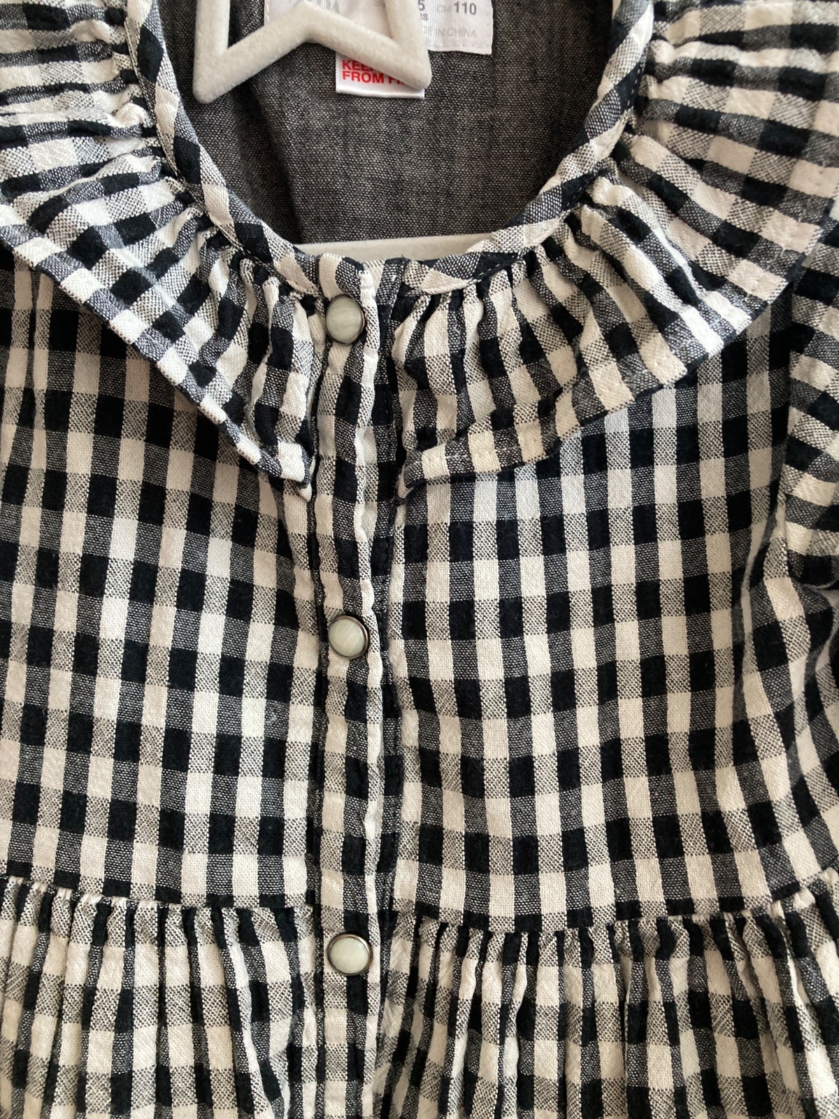Ponukam na predaj saty Zara jedným dieťaťom. Velkost uvedená 110, daju sa nosiť od väčšej 104 a ešte aj ako menšia 116. Všetky sú bez poškodení, ako nové. Čierne s gingham kockou zapínanie na gombíky od hora až dole. Predaj aj po kuse, cena je za kus.