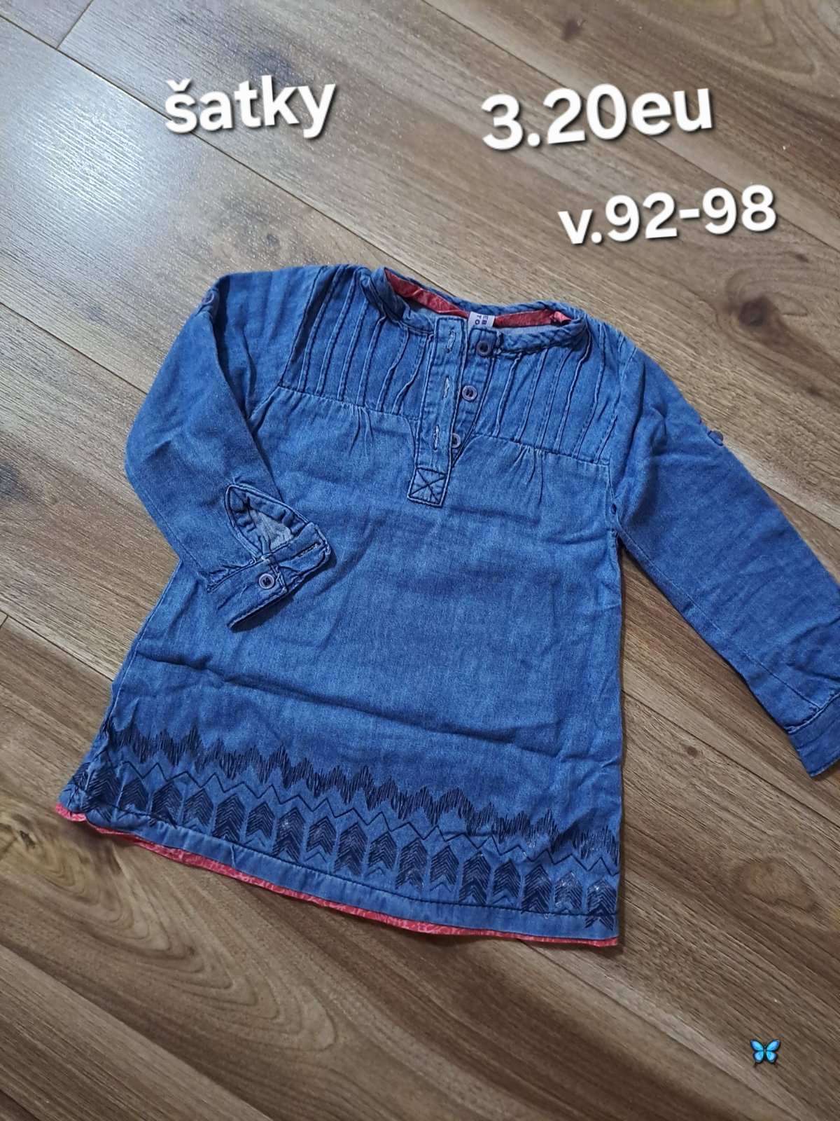 Riflové šaty značky iDo, veľkosť 92 (dcéra nosila aj ako 98), na gombíky po celej dĺžke, top stav, vyprané v Non toxic prášku.