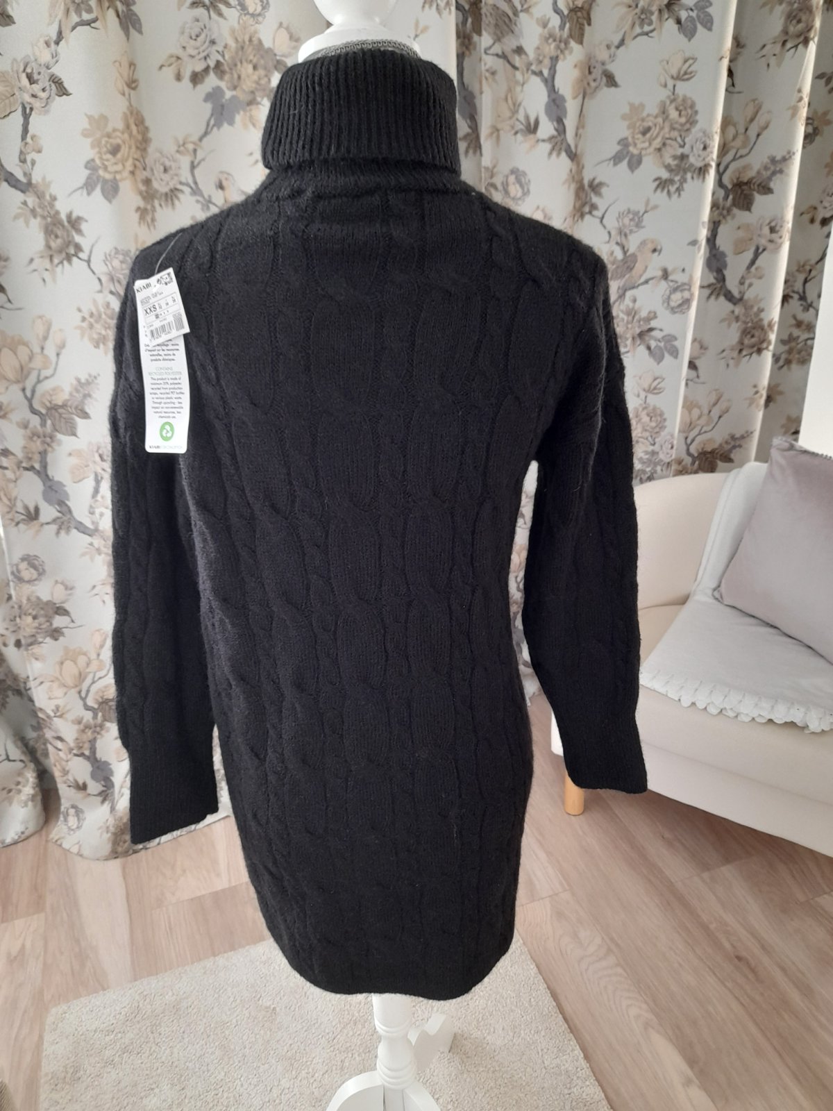 Predám paradne teplučke pletene saty. Sýta čierna farba, krasny osmickovy vzor, pohodlny strih, materiál makkucky , ktorý 'nehryzie'. Výborná a obľúbená francúzska značka Kiabi. Nove s visackou, vhodne aj ako darček.