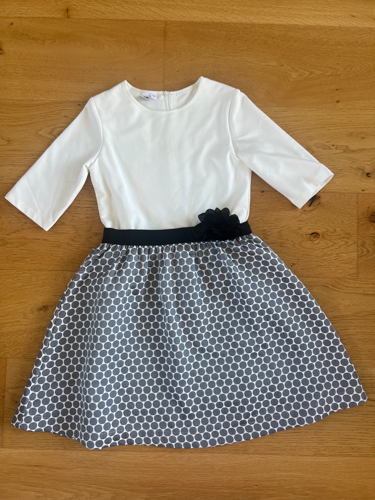 Predam krasne prilezitostne saty, vrch je smotanovej farby hrubsia elasticka bavlna a suknicka akoby brokatova. Ozdobna ruzicka je zo šifonu. Su v skvelom stave, asi len 2 krat oblecene.
