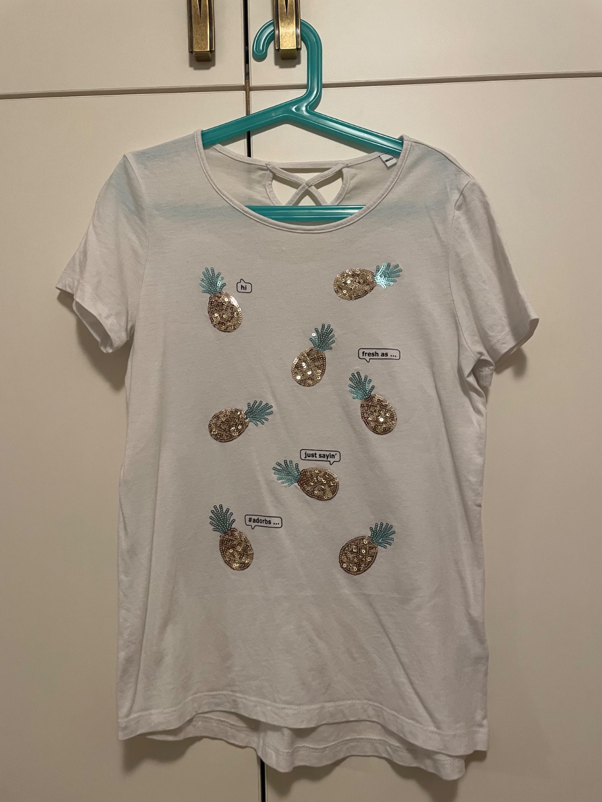 Predam 3x saty s dlhym rukavom vel. 140 bez poskodenia + 1 kuzusinova kabelka + 1 saty na ramienka vel. 140. K tomu zadarmo davam 2 letne tricka vel. 146/152, letne bolerko rovnakej velkosti a 3x nepouzite silonky. V pripade zaujmu zadarmo aj 4x plastovy vesiak na fotkach. Cena 12€ za vsetko spolu.