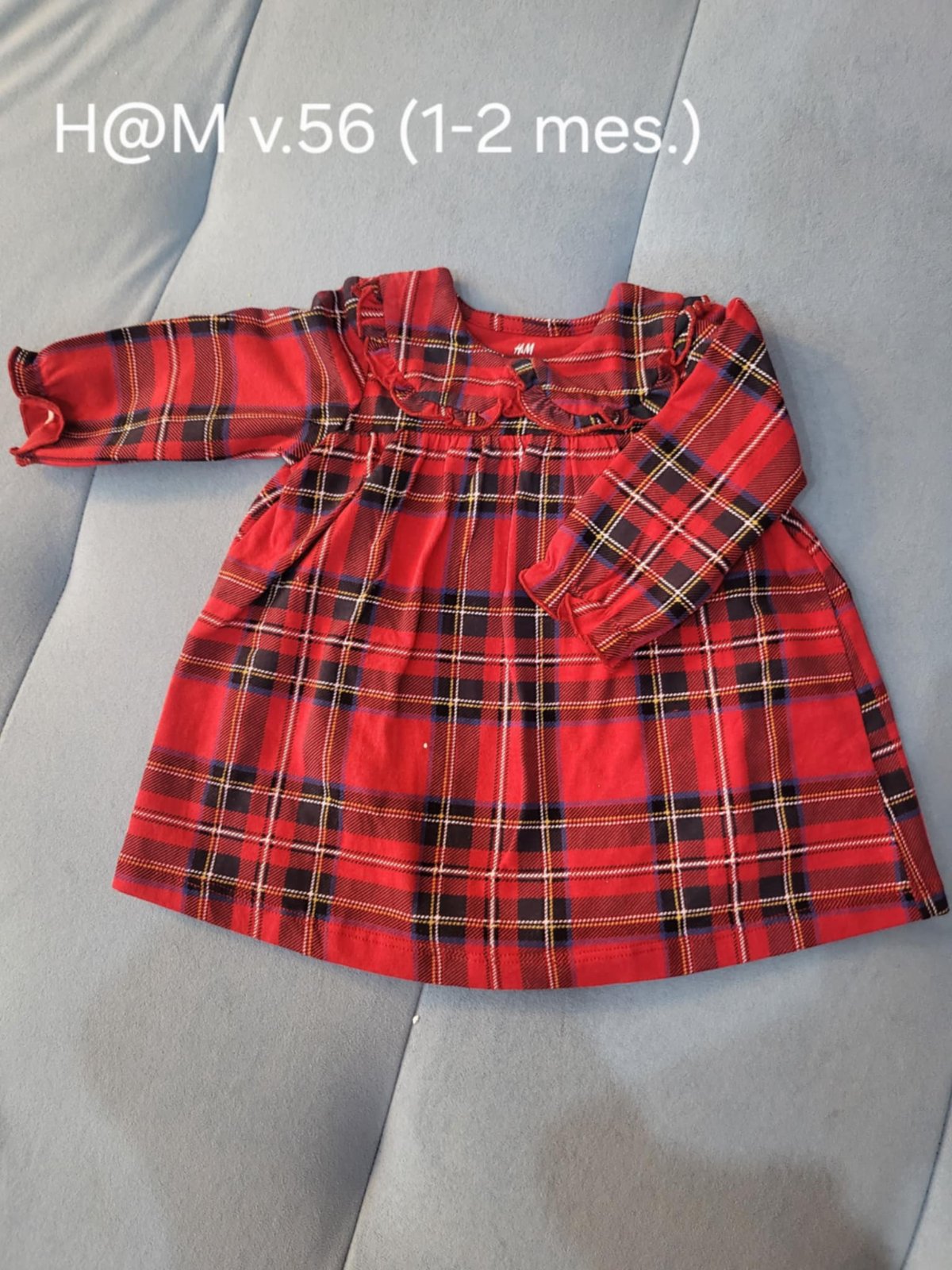 Červené kárované šaty H&M. Veľkosť 56 (1-2 mes.). Použité 2x (na Vianoce).