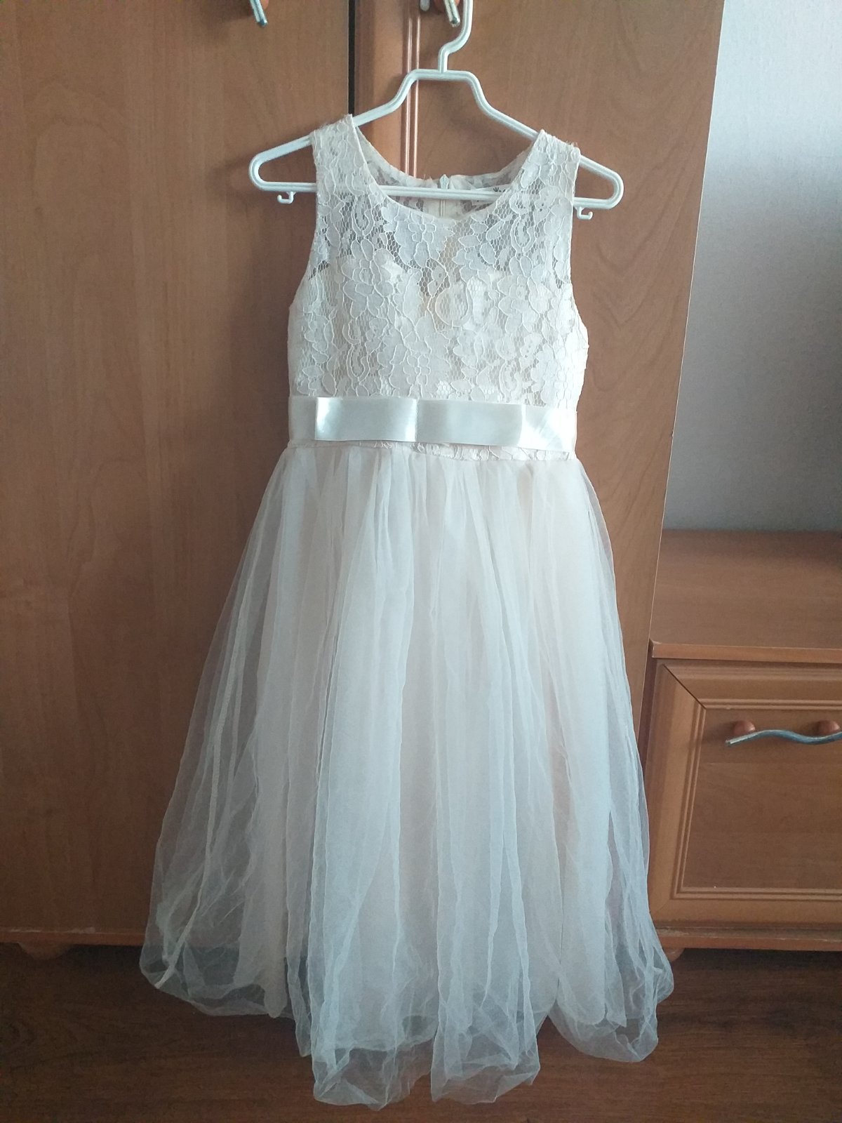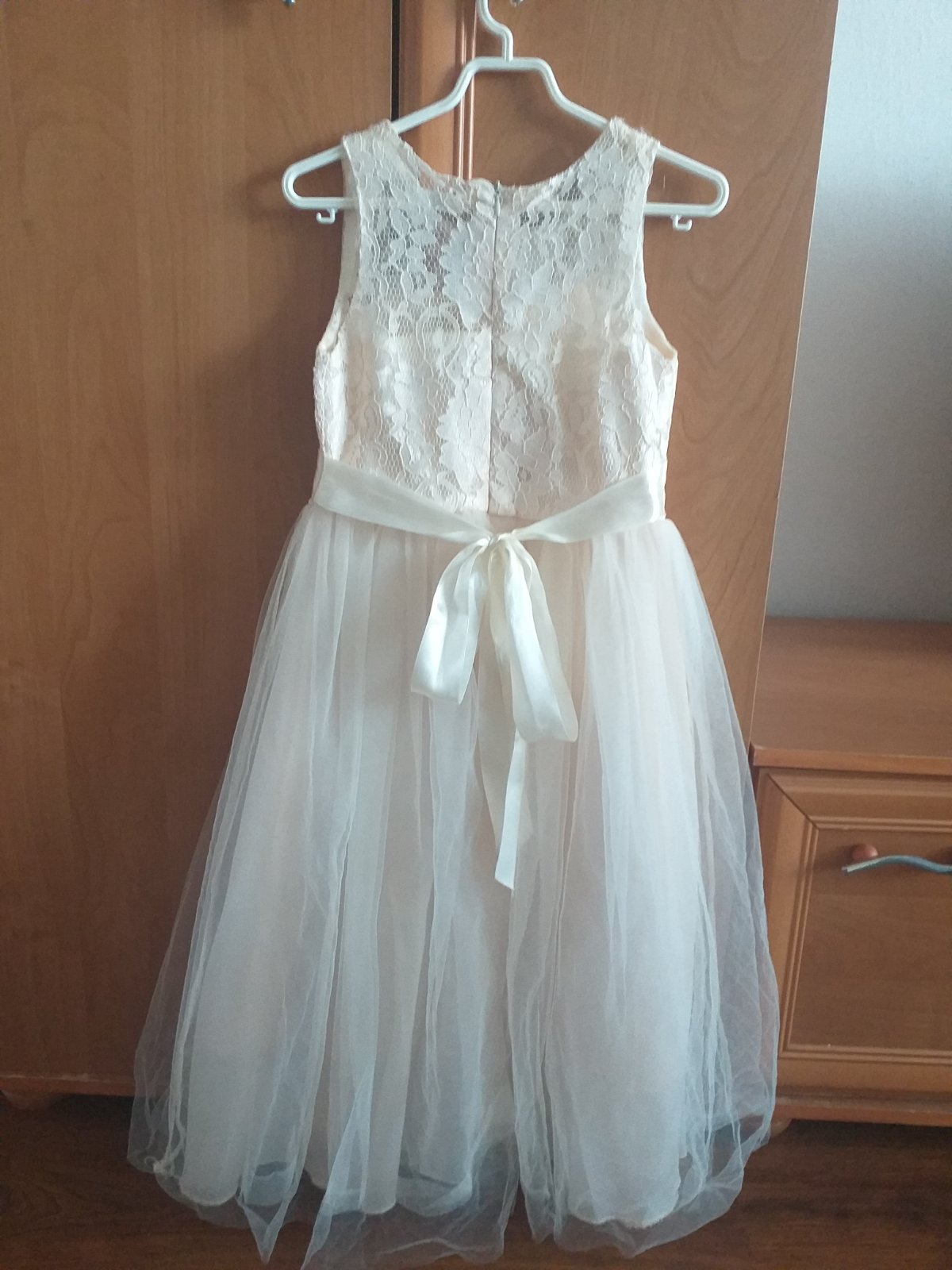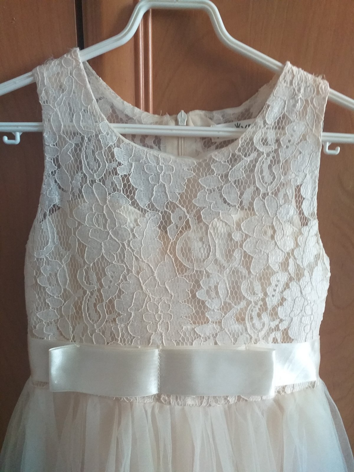 SKLADOM Nádherné sviatočné šaty Next s výraznou mašľou vpredu, dovoz UK, hodváb + tyl, odtieň veľmi svetlá ivory a biela, vhodné aj na tie najväčšie slávnosti (svadba, 1. sväté prijímanie, ...). K...