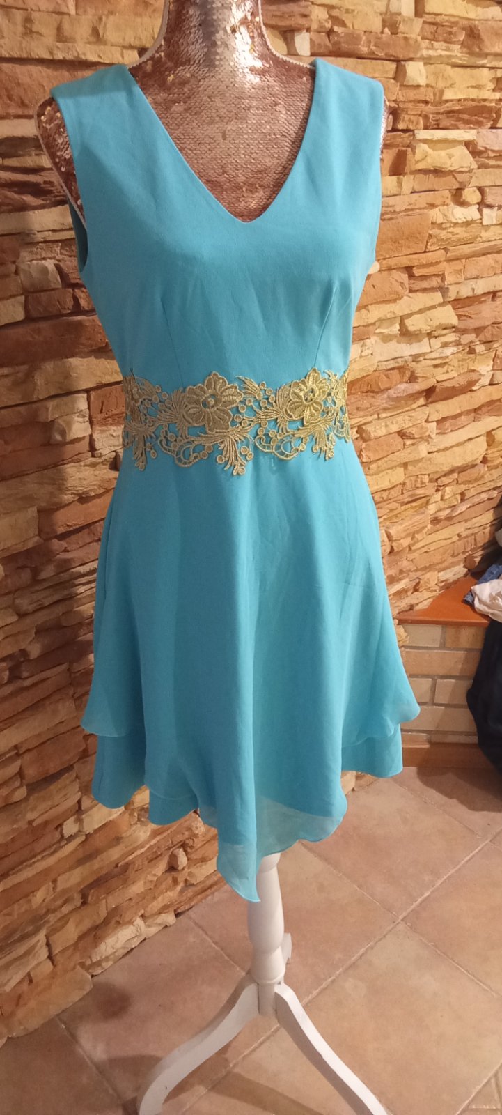 Predám prenádherné šaty zn. CHI CHI London, farba baby blue, midi veľkosť, veľmi drahá značka, nemala som oblečené ani raz, vhodné na ples, svadbu, v skutočnosti oveľa krajšie, vrchná vrstva samá č...