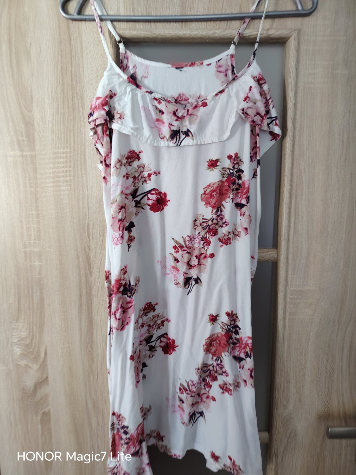 Krásne bavlnené šaty s potlačou na veľkosť L. V štýle Dior. Zapínanie vzadu na zips. Dĺžka 81 cm, prsia 43 cm a pás 33 cm.