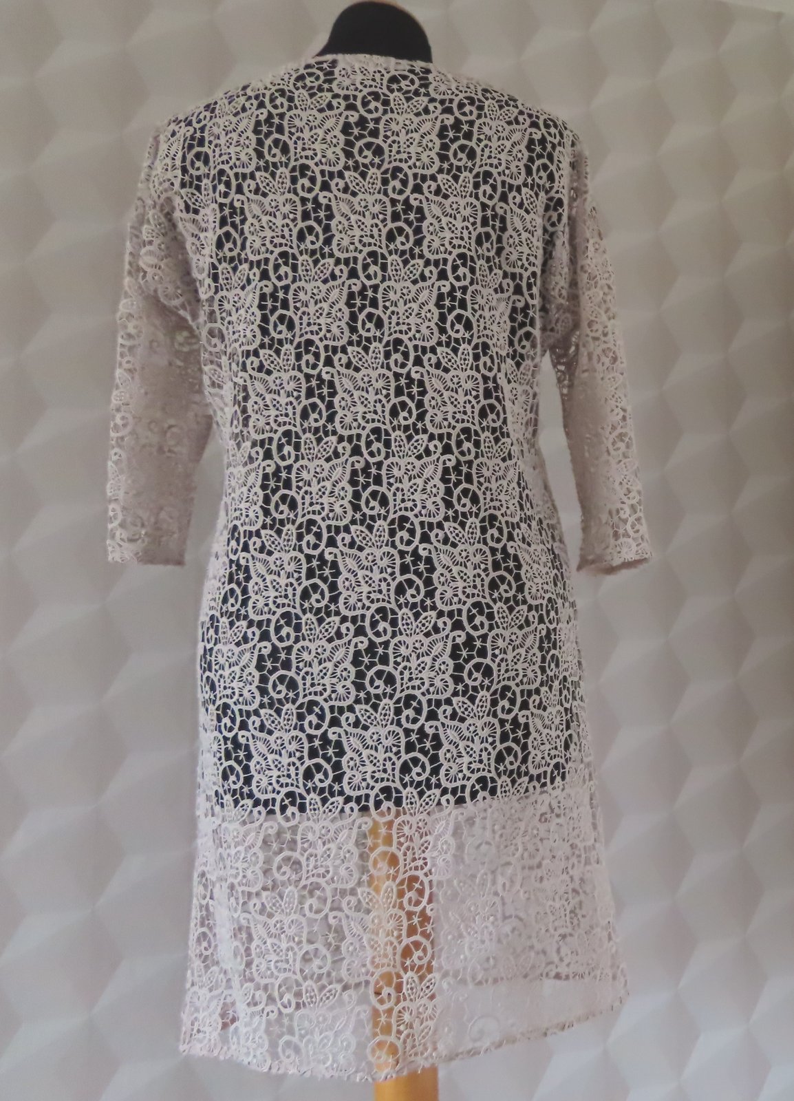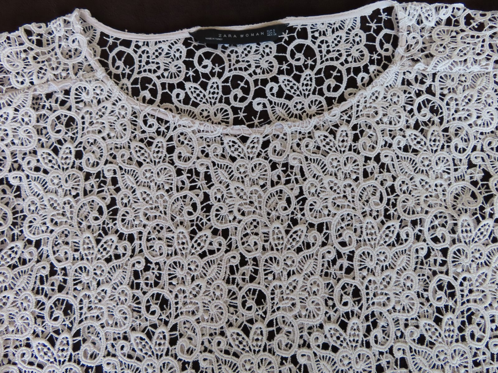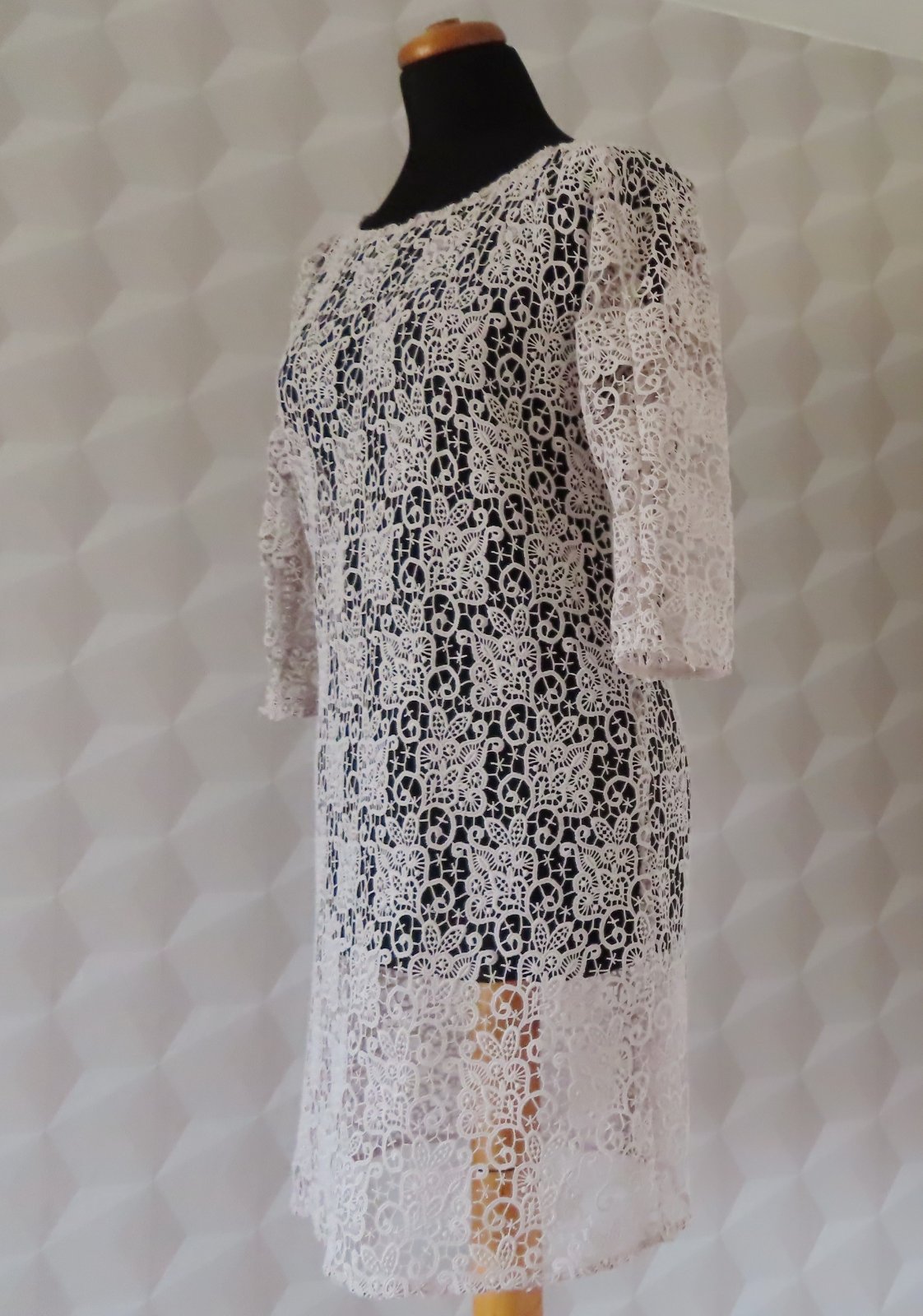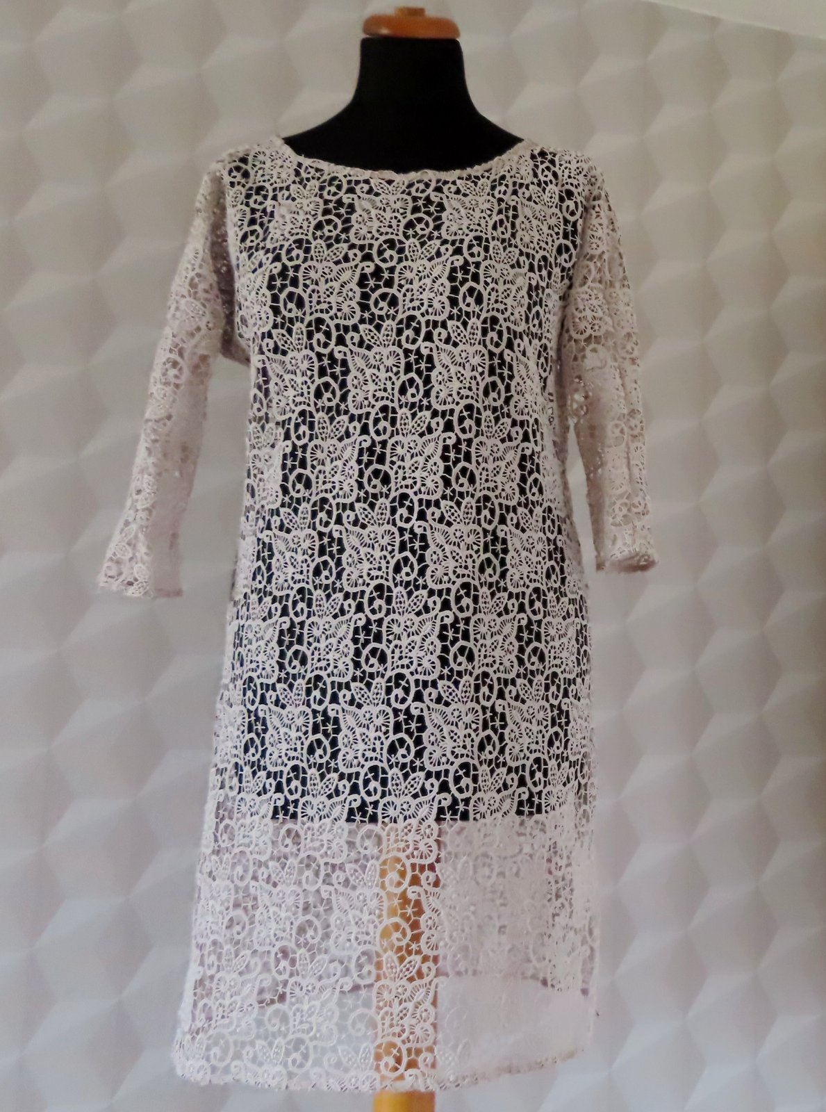 Biele šaty z bavlnenej čipky (vyzerá to akoby háčkované) značka Zara, veľ.S - rozmery: dĺžka 89cm, pod pazuchami 2x49cm, rukáv od krku 44 a od pazuchy 32cm - je 3/4 dĺžky.