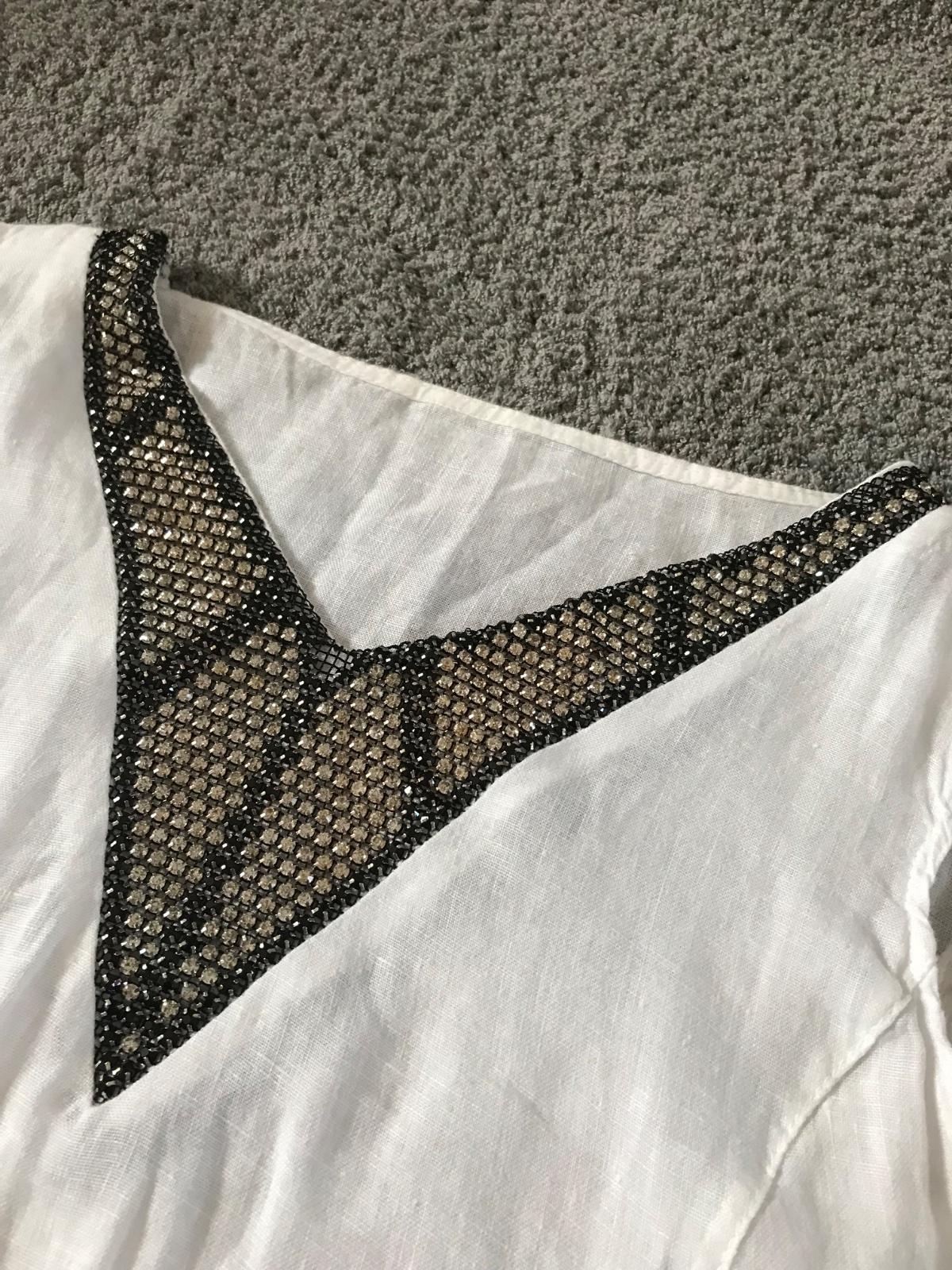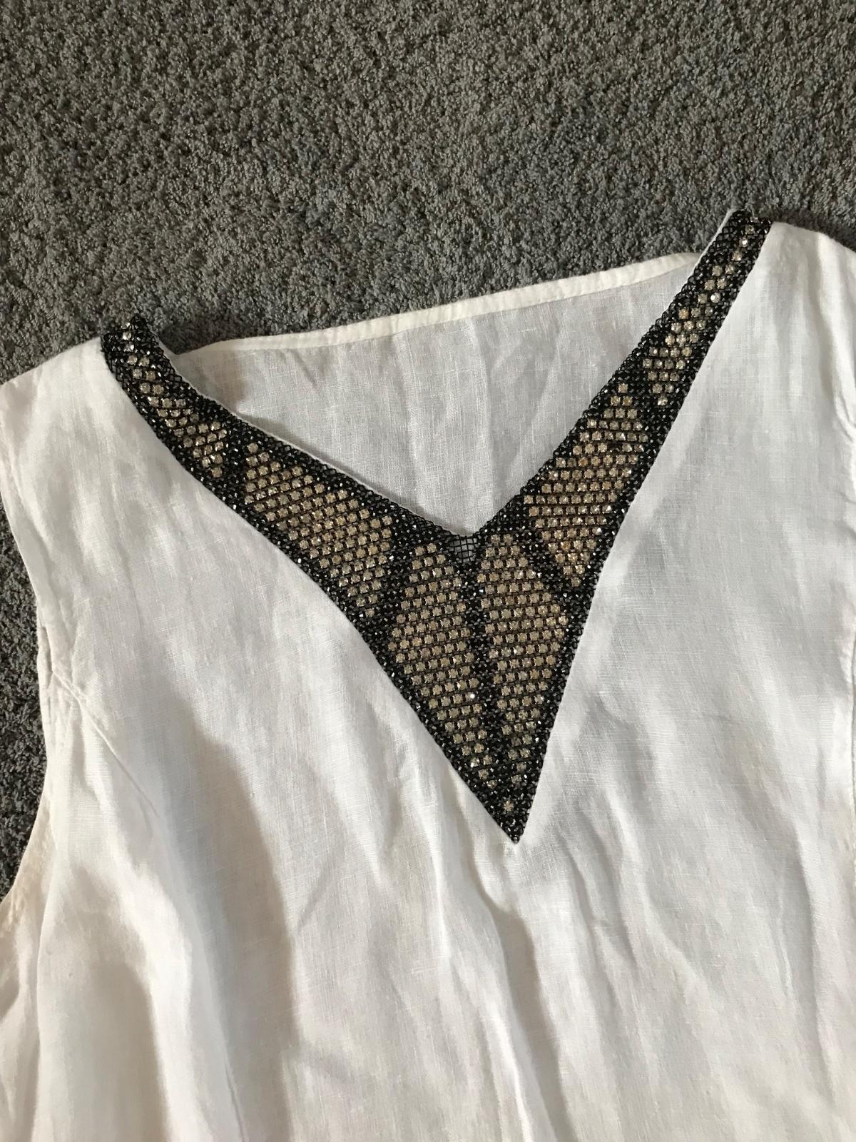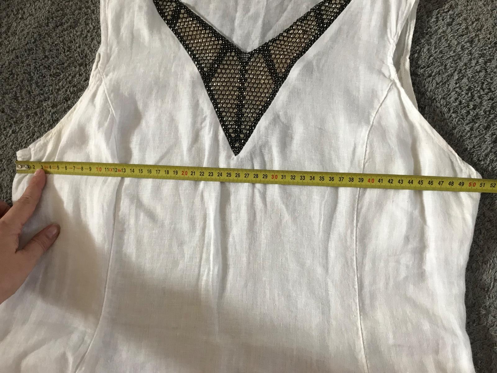 Krásne biele letné šaty ,95% cotton ,5% elastan . ,to je vrchná časť a je to rebrovaná tričkovina , a spodok je ,53% ľan ,47% cotton ,bez poškodení ,dĺžka-98 cm ,pod pazuchami 2x 44cm ale ešte povo...
