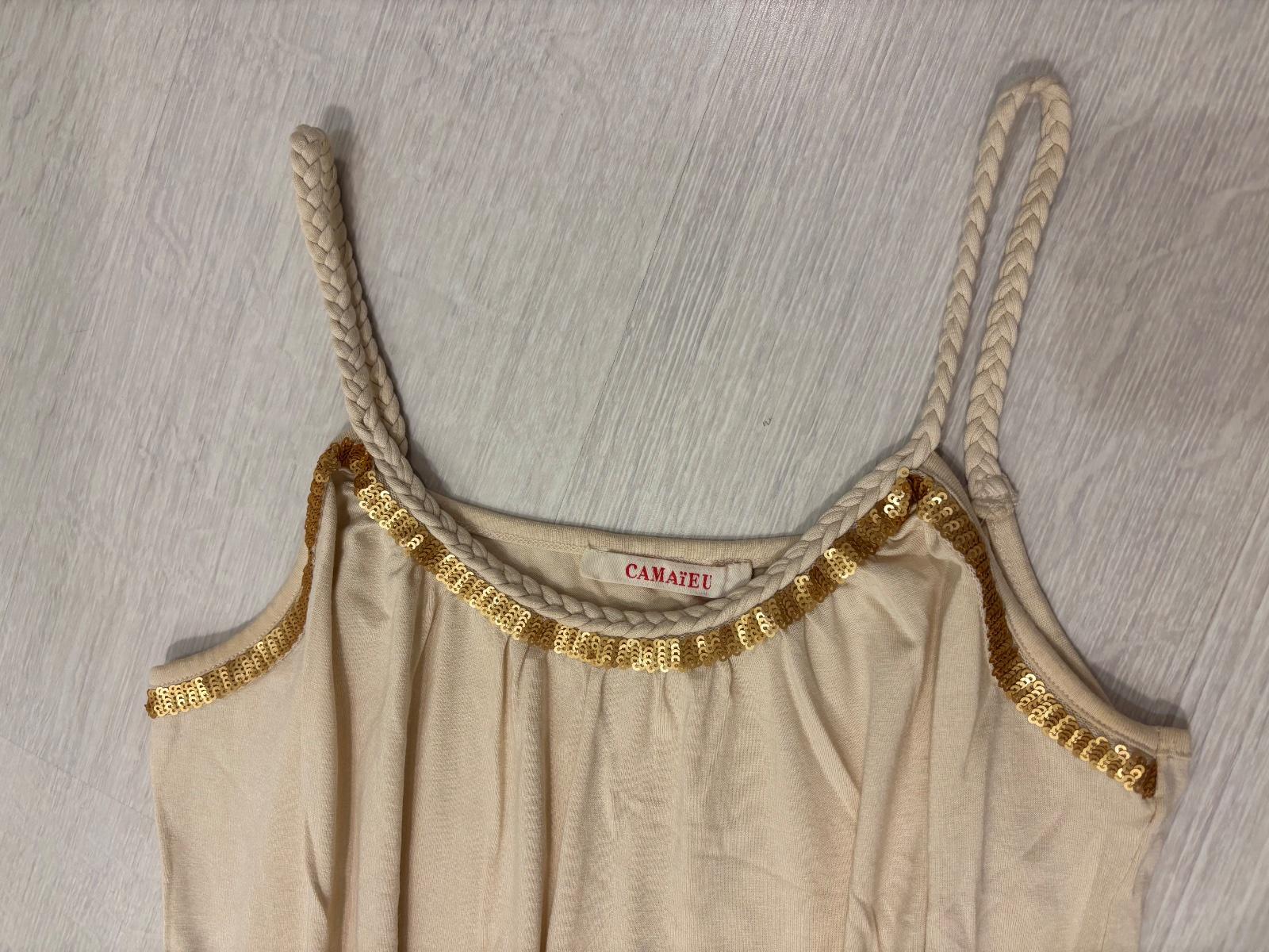 Predam saty na ramienka, pekne detaily zapletene ramienka a zlate flitre, v pase snurka, bez chyby, raz oblecene, viskoza + elastan