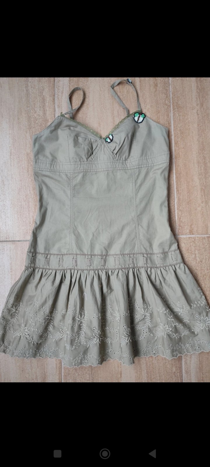 Ponúkam na predaj veľmi pekné olivové (zelené, kaki) letné šaty, málo nosené (asi 2 x), posúvam, mám toho veľa. Veľkosť M/L (EU 38-40). Zaujímavý strih, vpredu kratší diel, vzadu predĺžené, ľahký p...