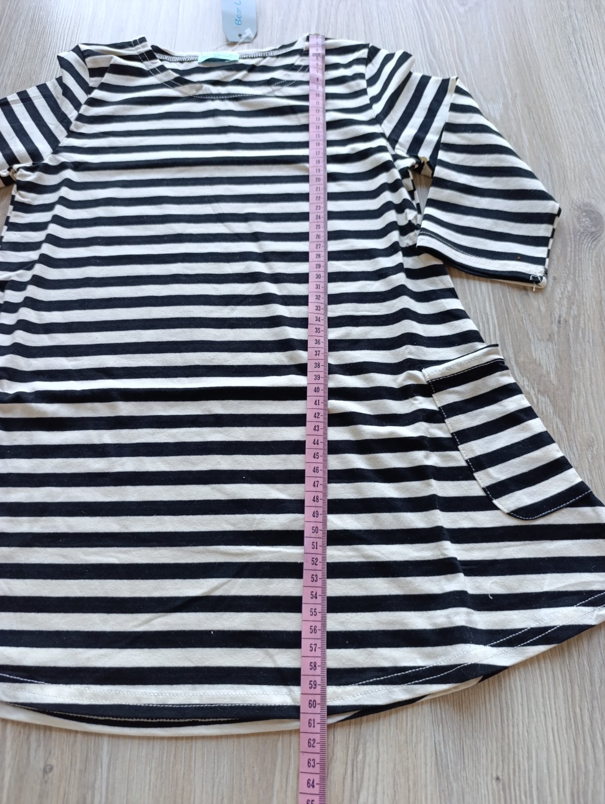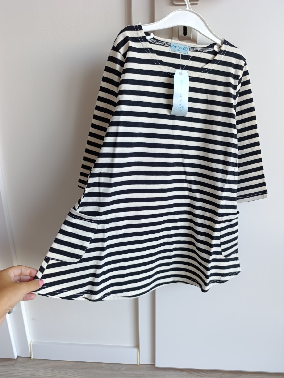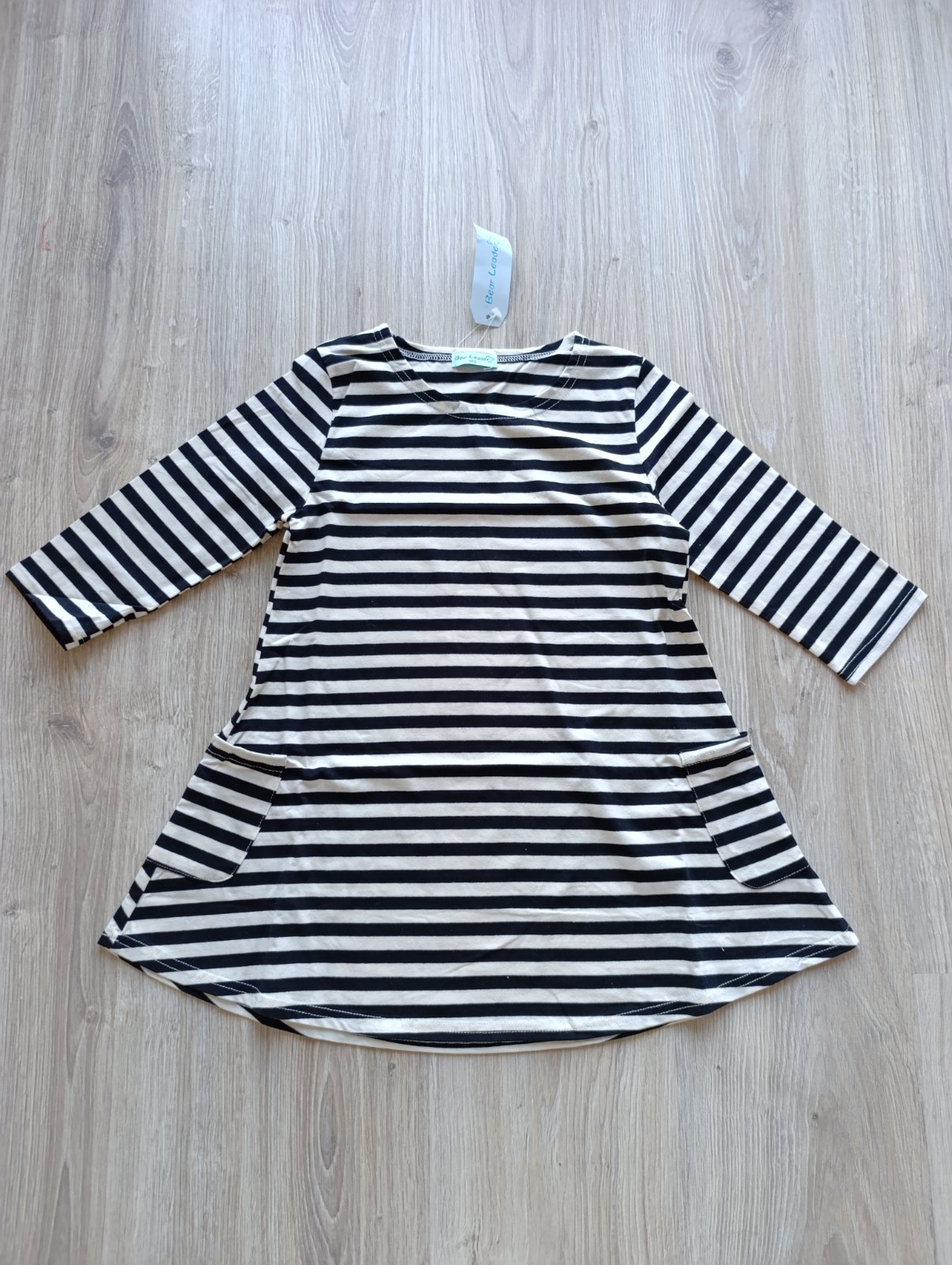Šaty majú vrecká na každej strane, rukávy sú trojštvrťové.