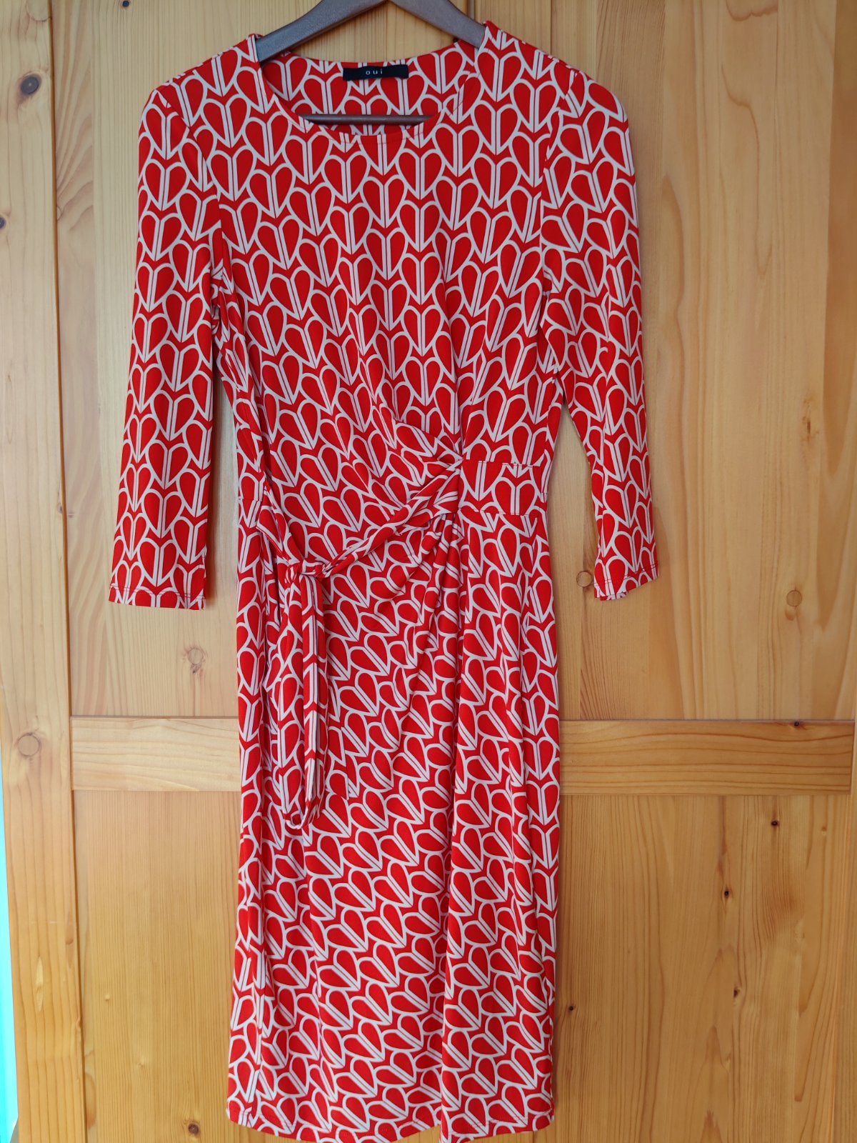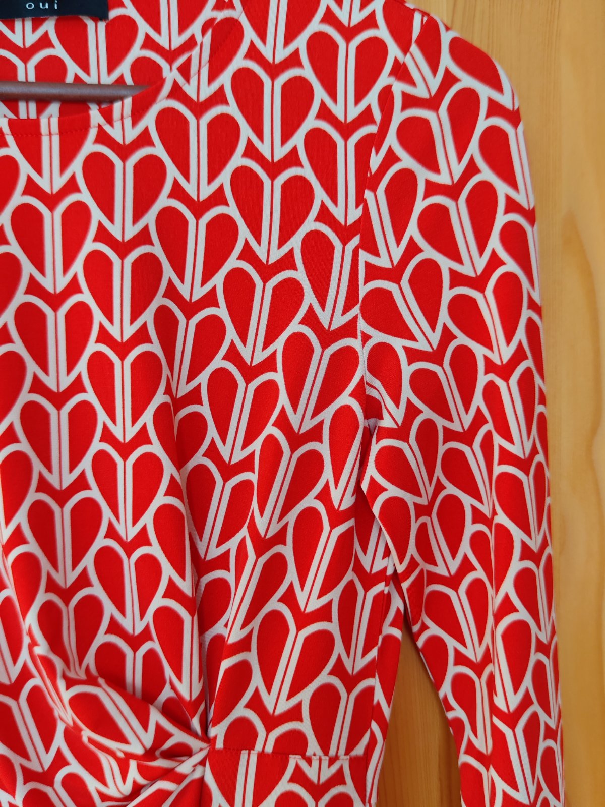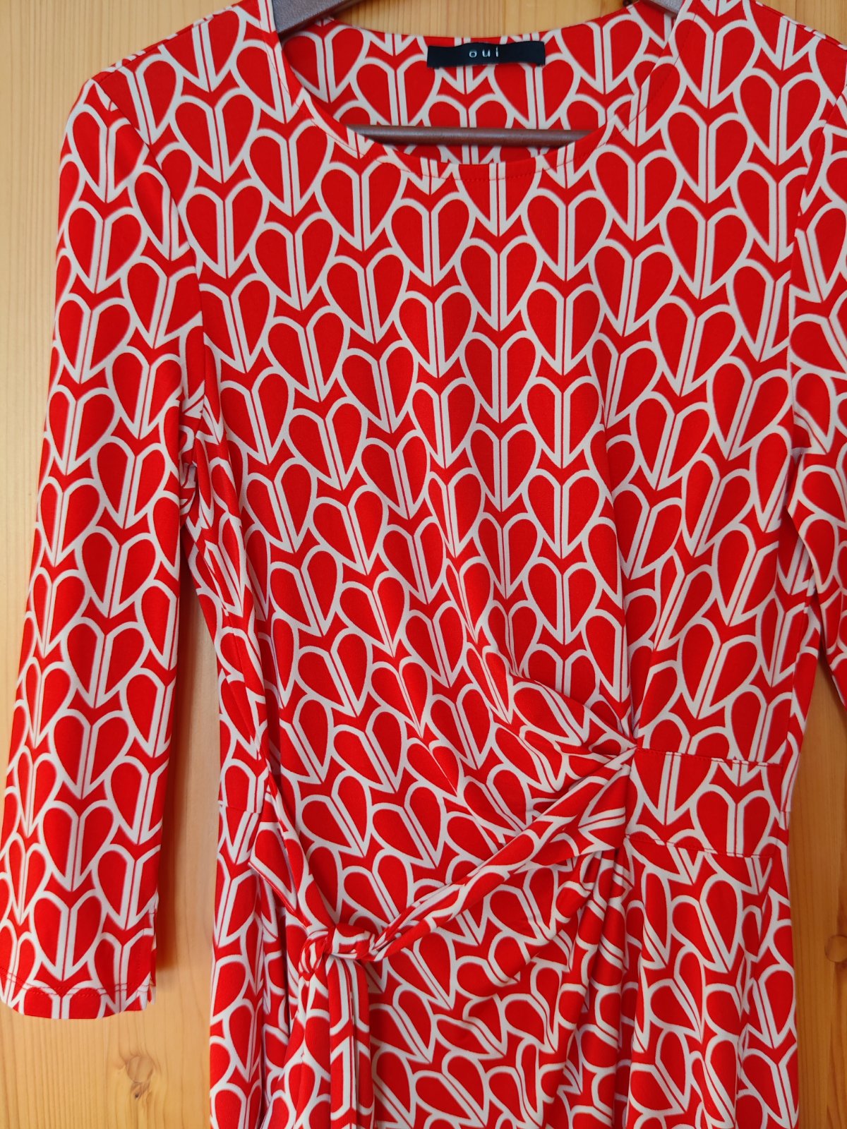 Nádherné kvalitné pružné srdiečkavé šaty originál OUI, v Krásnej červenej farbe luxusné super sedia krásny strih optický ešte zoštíhľujú, veľkosť uvedená 34 ale sedia na také Sko