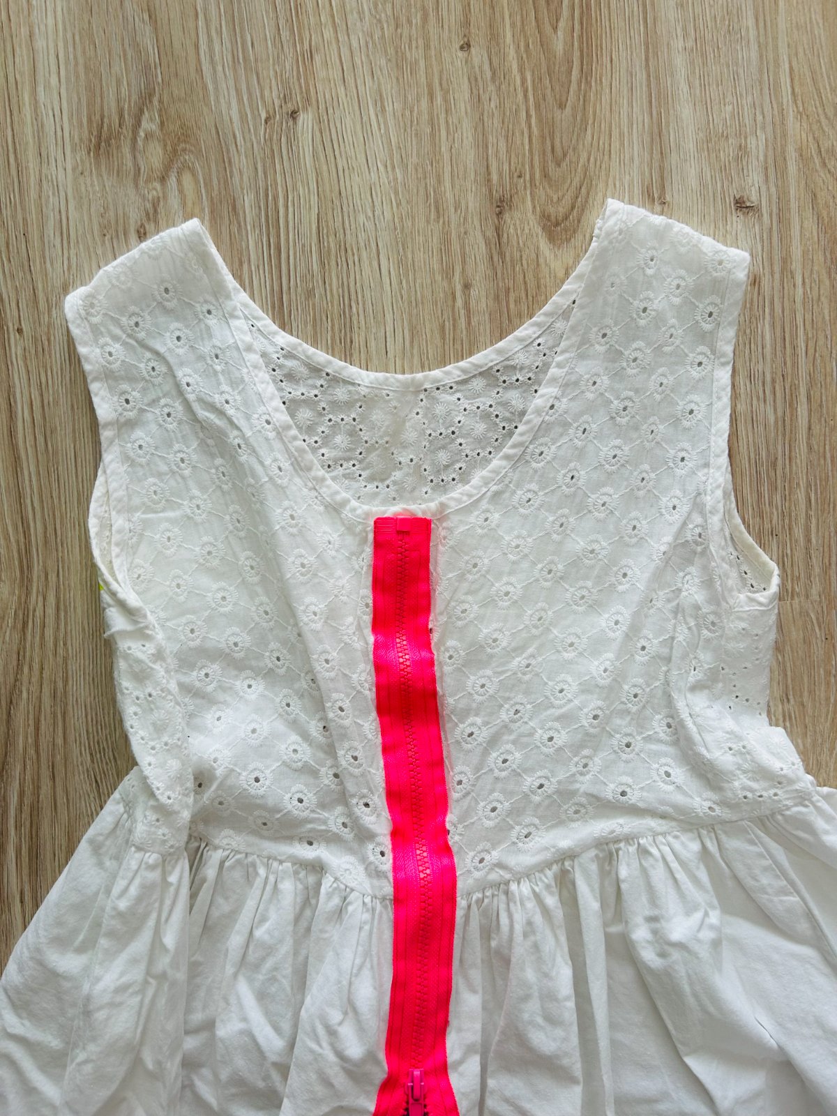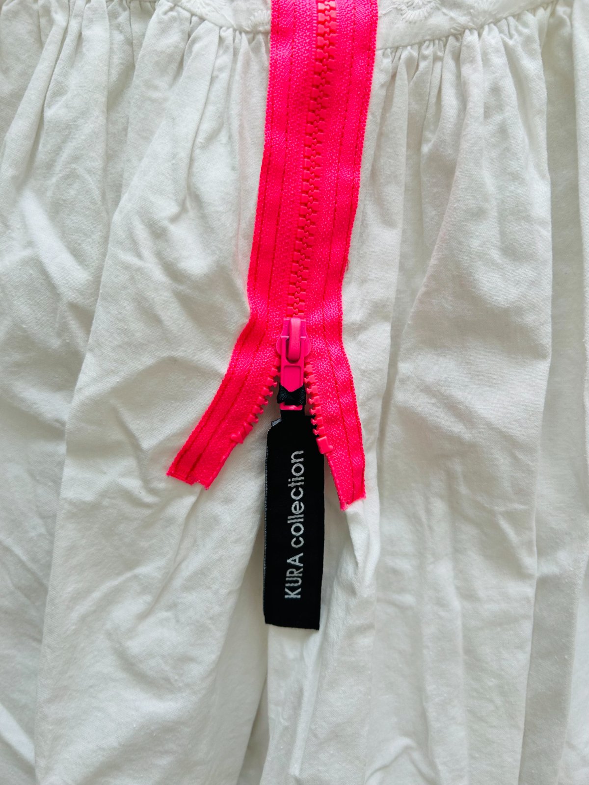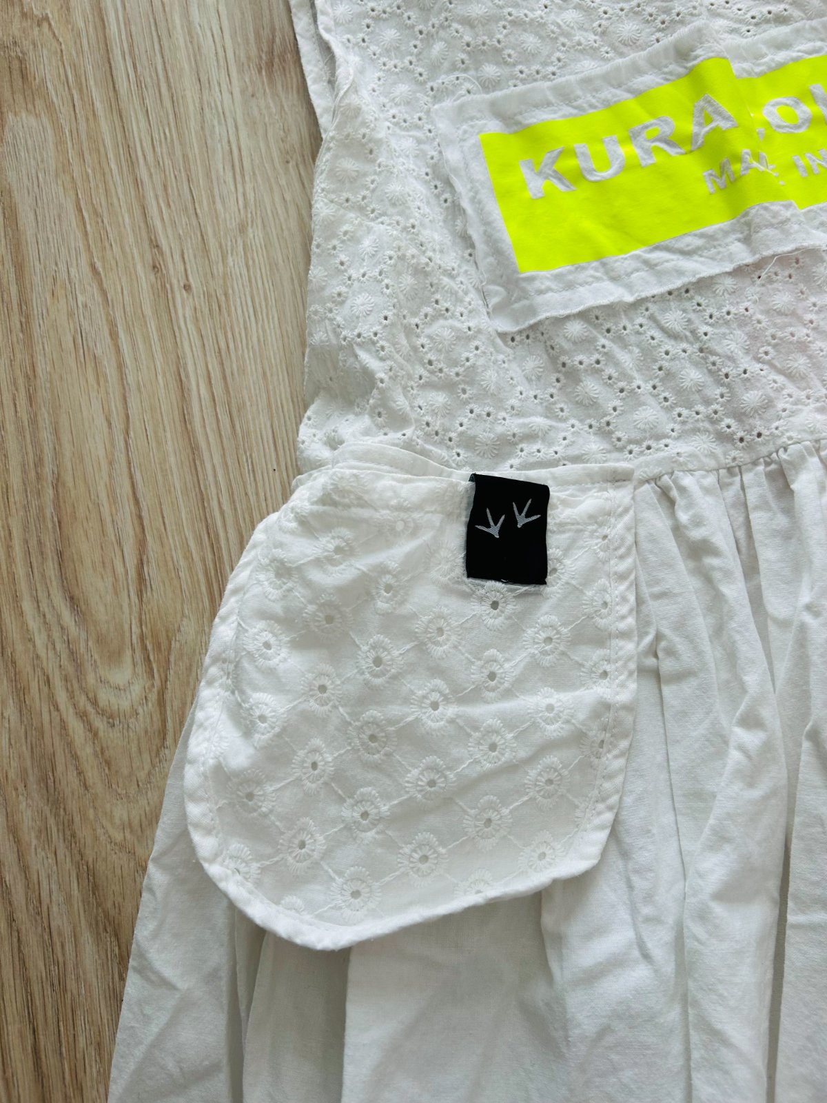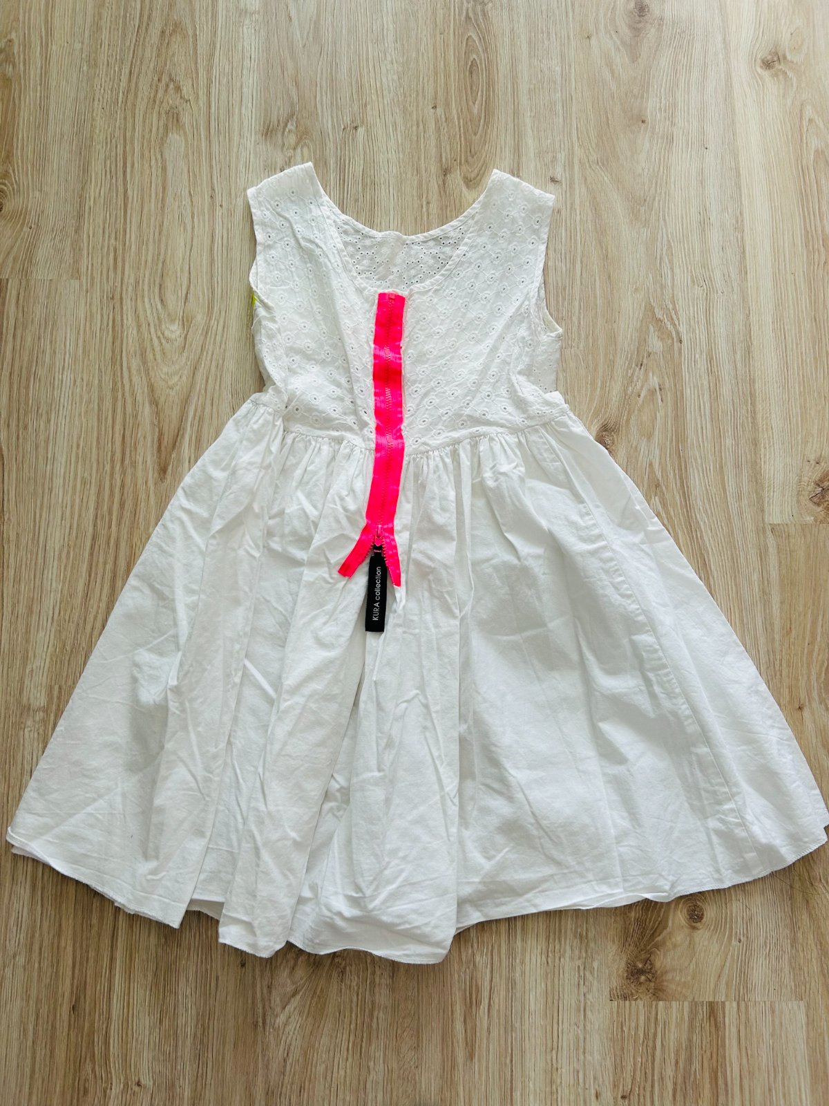 Predám madeirové šaty slovenskej značky KURA COLLECTION v univerzálnej veľkosti, sadnú na XS, S a M. Šaty boli oblečené len 1x. Majú bielu farbu a na niektorých miestach madeirovú výšivku. Vpredu neónový nápis, vzadu neónový zips. Veľmi pekný originálny letný kúsok.