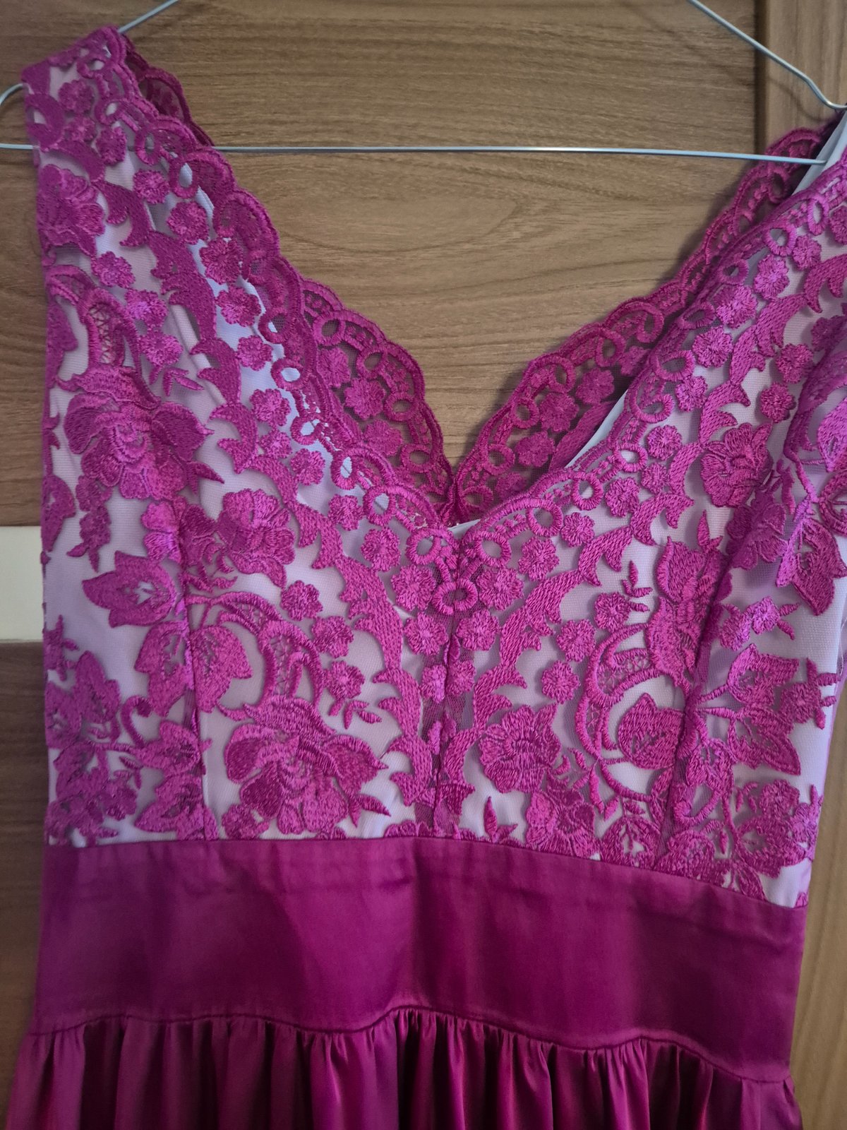 Predám krásne dámske šaty 1x oblečené vo veľkosti S. Šaty sú na prsiach vystužené, zapínajú sa na zips v zadnej časti. Materiál je vo vrchnej časti jemne elastický. Šaty majú v predu 2x rozporok. ...