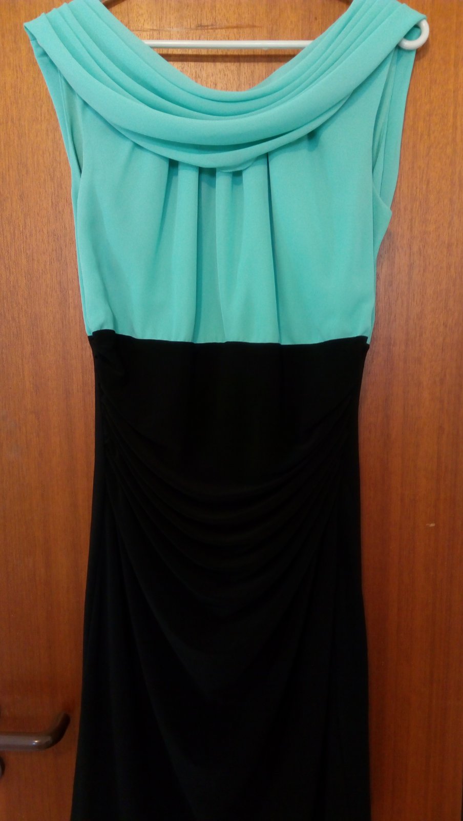Elegantné šaty, ľahký materiál, v prednej časti nariasené, sukňova časť elastická ,v prípade záujmu premeriam