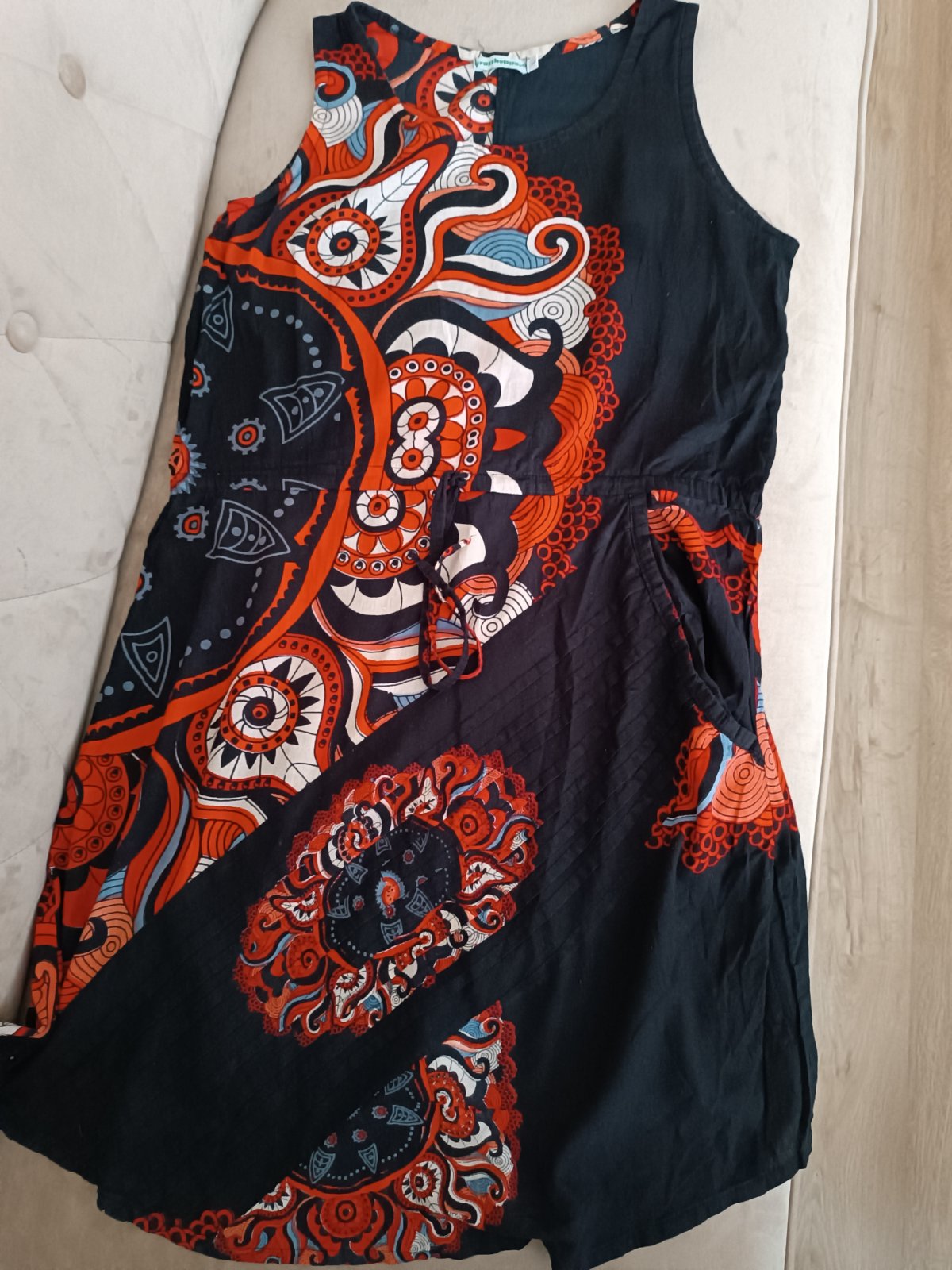 Letné šaty, pomerané, v páse možnosť stiahnuť, stav ako nové.