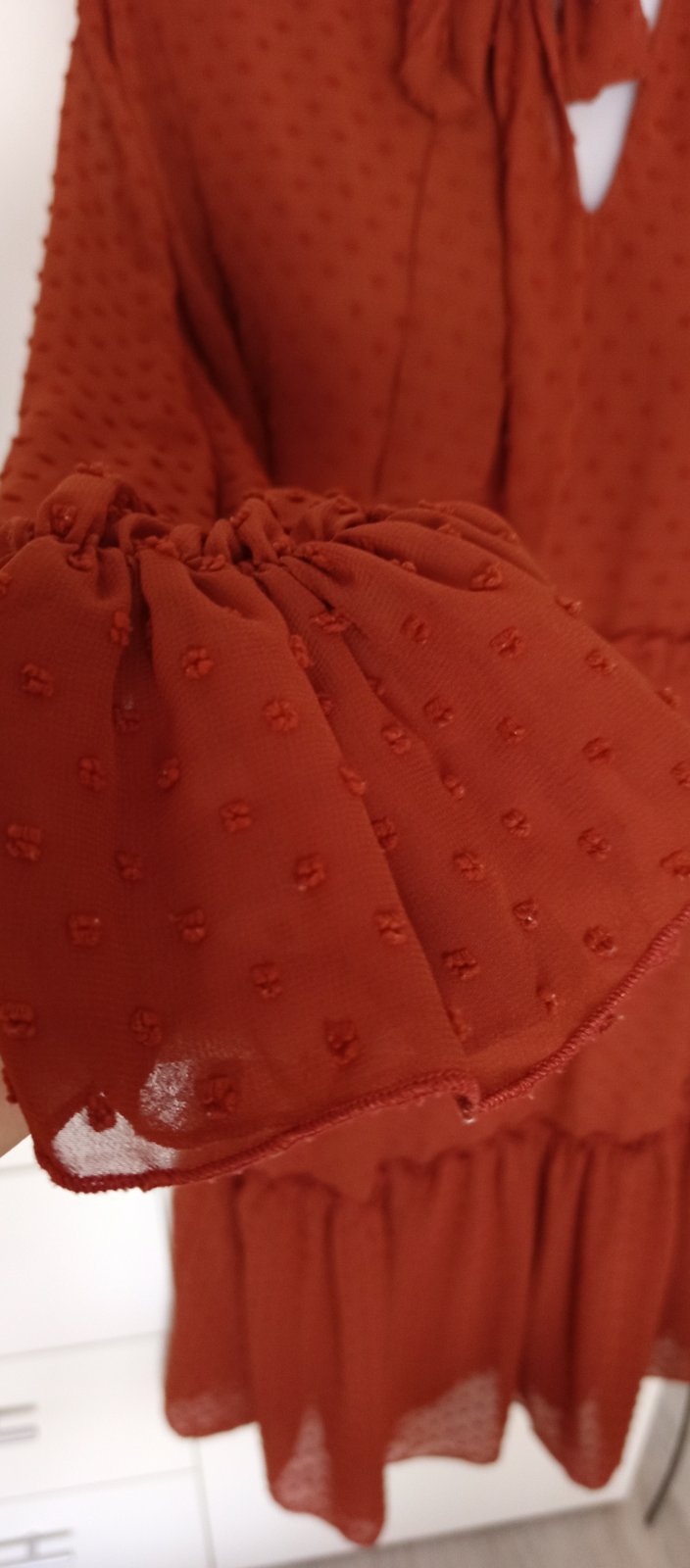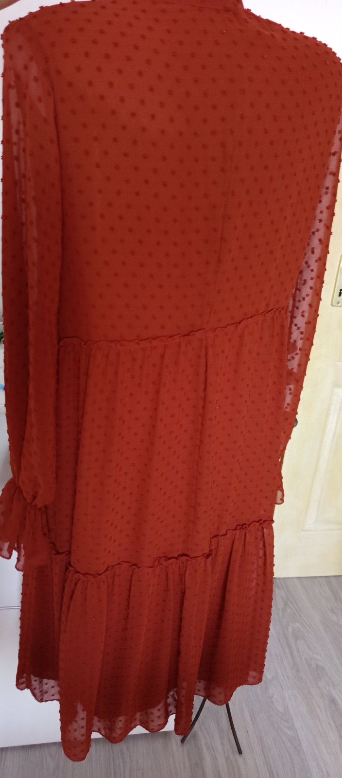 Prekrásné saty,priesvitné,sú podsité,tehlovo hnedej farby,dlzka 110cm,pod paz.45 cm