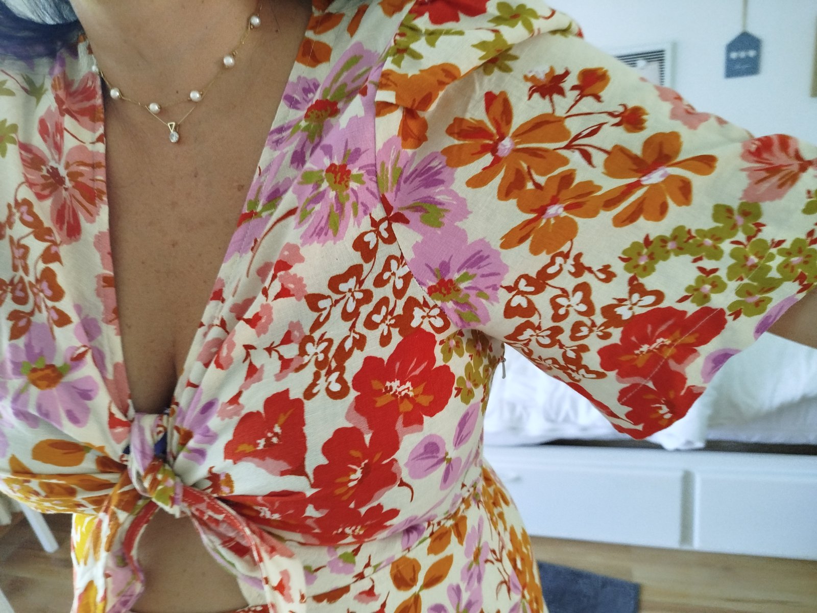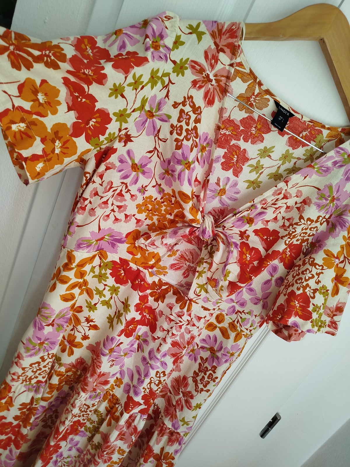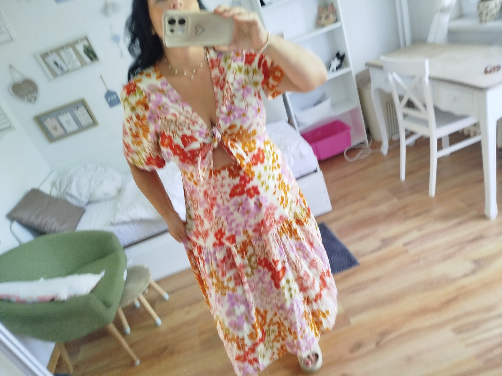 Farebné vzdušné,padave šaty Lindex malo nosené asi 3x na boku zips vpredu sa viažu príjemná bavlna organická dĺžka 130cm šírka pod pazuchami 56x2cm v páse kde sú predelene 48x2cm píšu c.L sadnú aj na Xl
