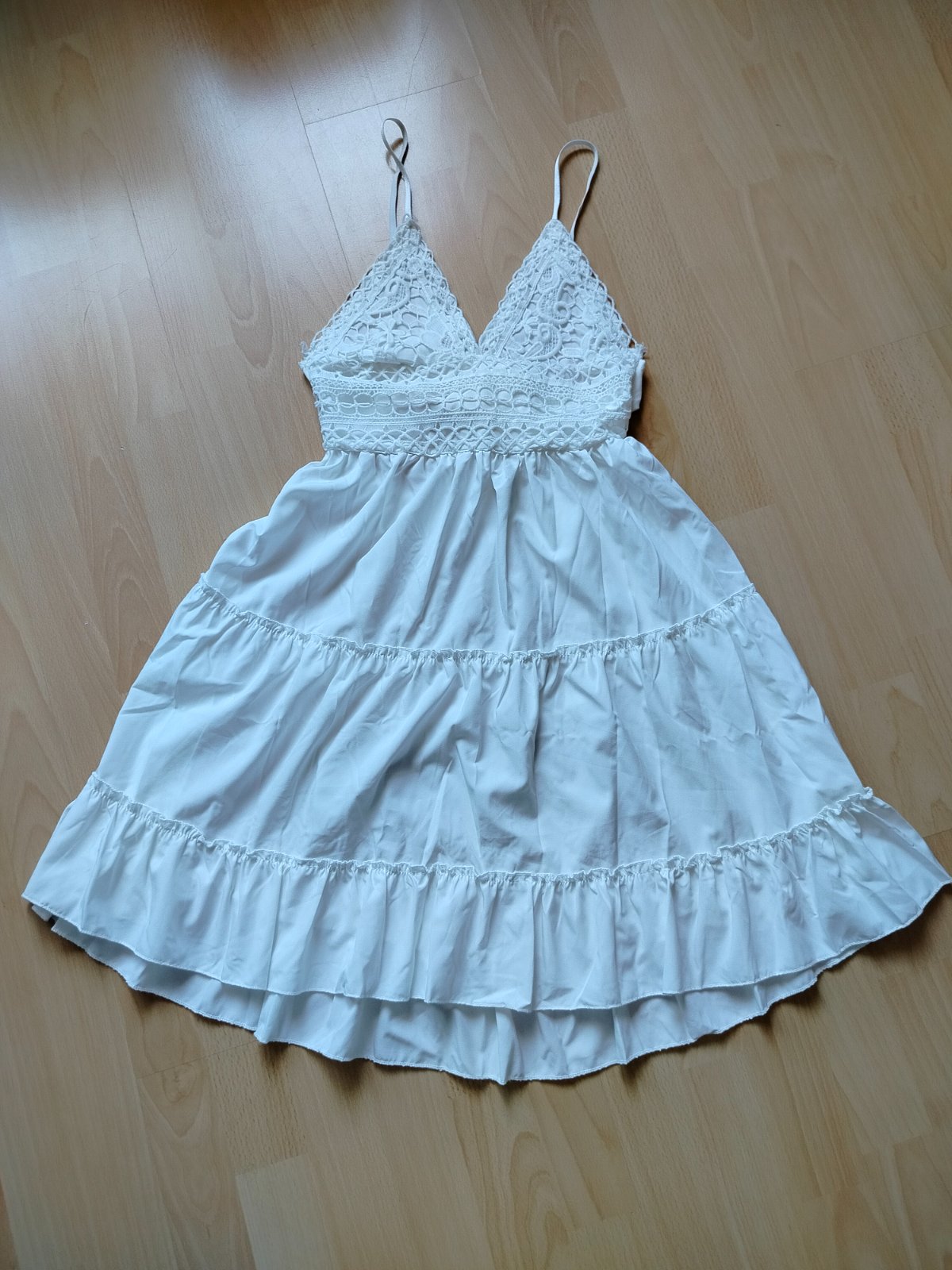 Len vyskúšané šaty, bez poškodení. Majú nastaviteľné ramienka, sú na gumičku prispôsobia sa. Šírka 32 (natiahnú sa) dĺžka 87.