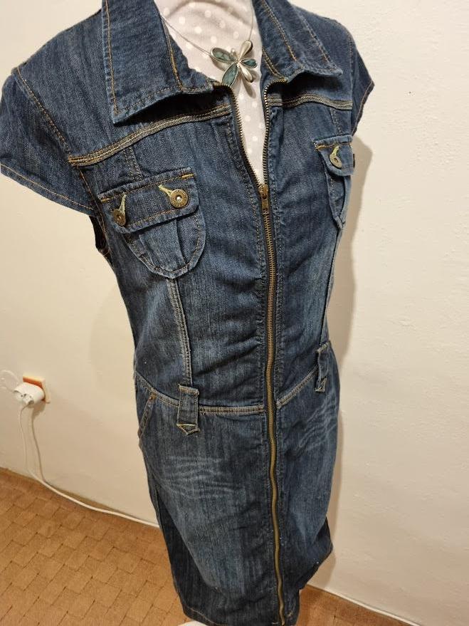 Tmavomodré rifľové šaty na zips Denim Co 38