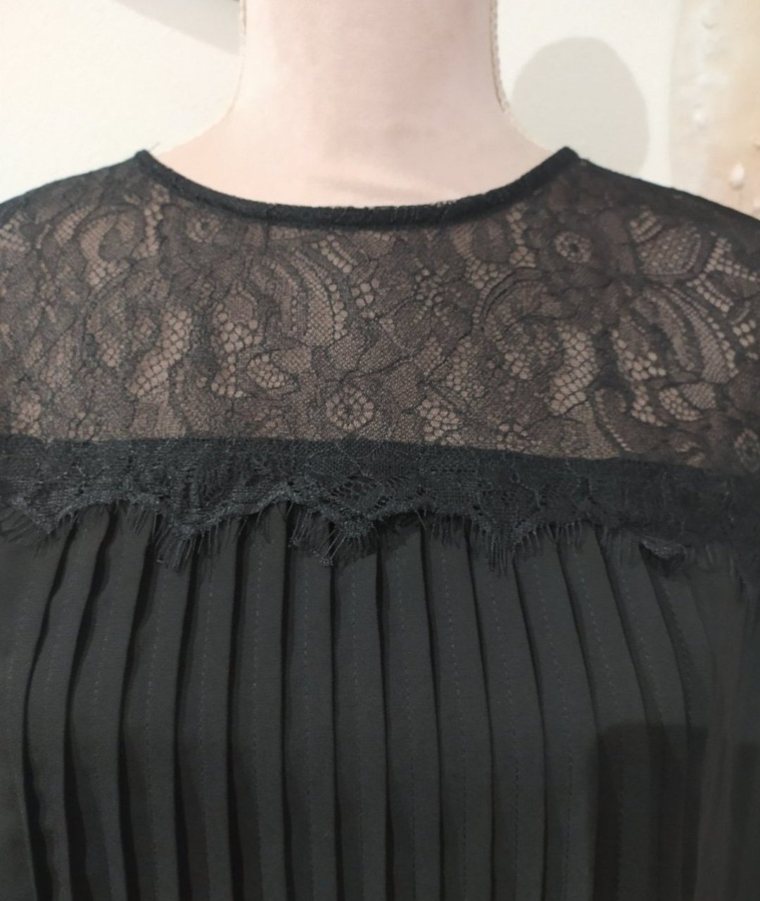 Top stav,materiál šifon,zdobené na dekolte krajkou,rukáv taktiež ukončený krajkou Dl 90,šírka 48*2 v,kr12