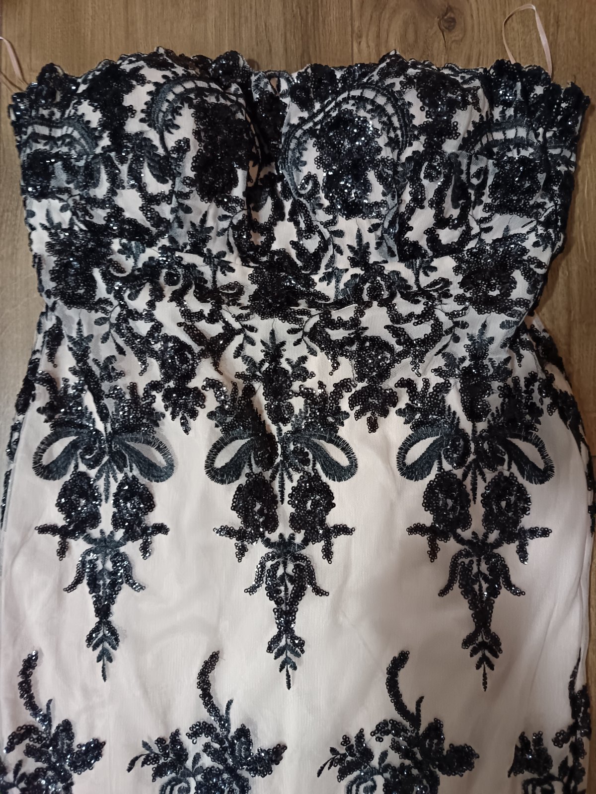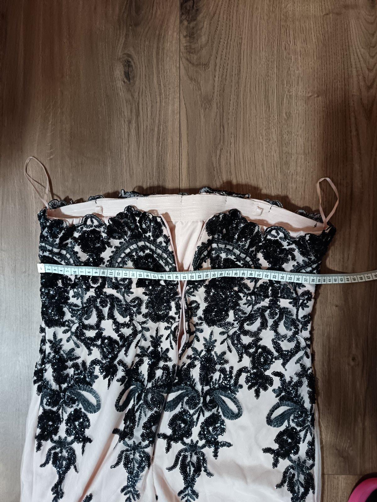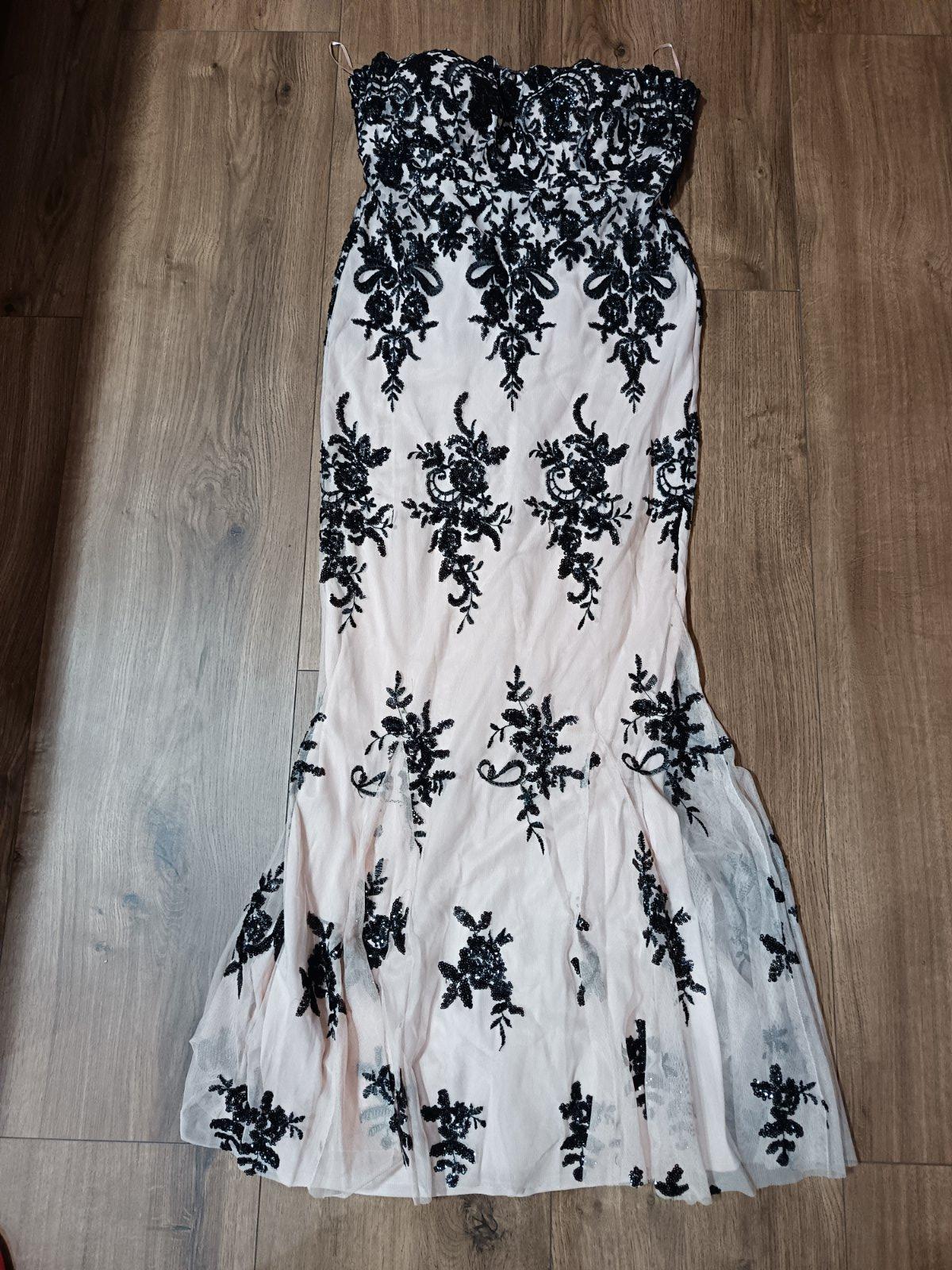 Oblečené dvakrát na plese. Rozmery na fotkách. Krásna púdrovo ružová farba v kombinácii s čiernou.