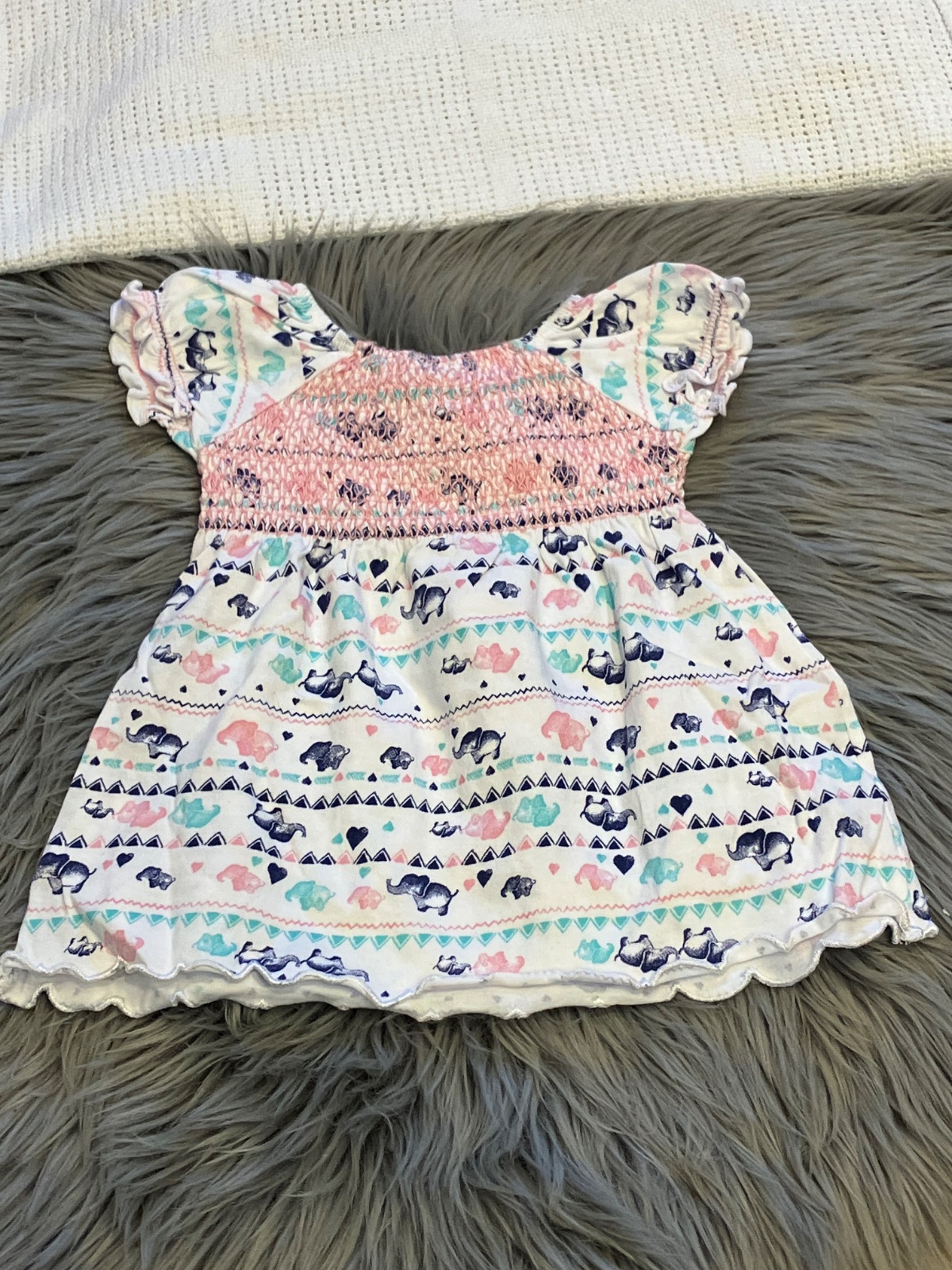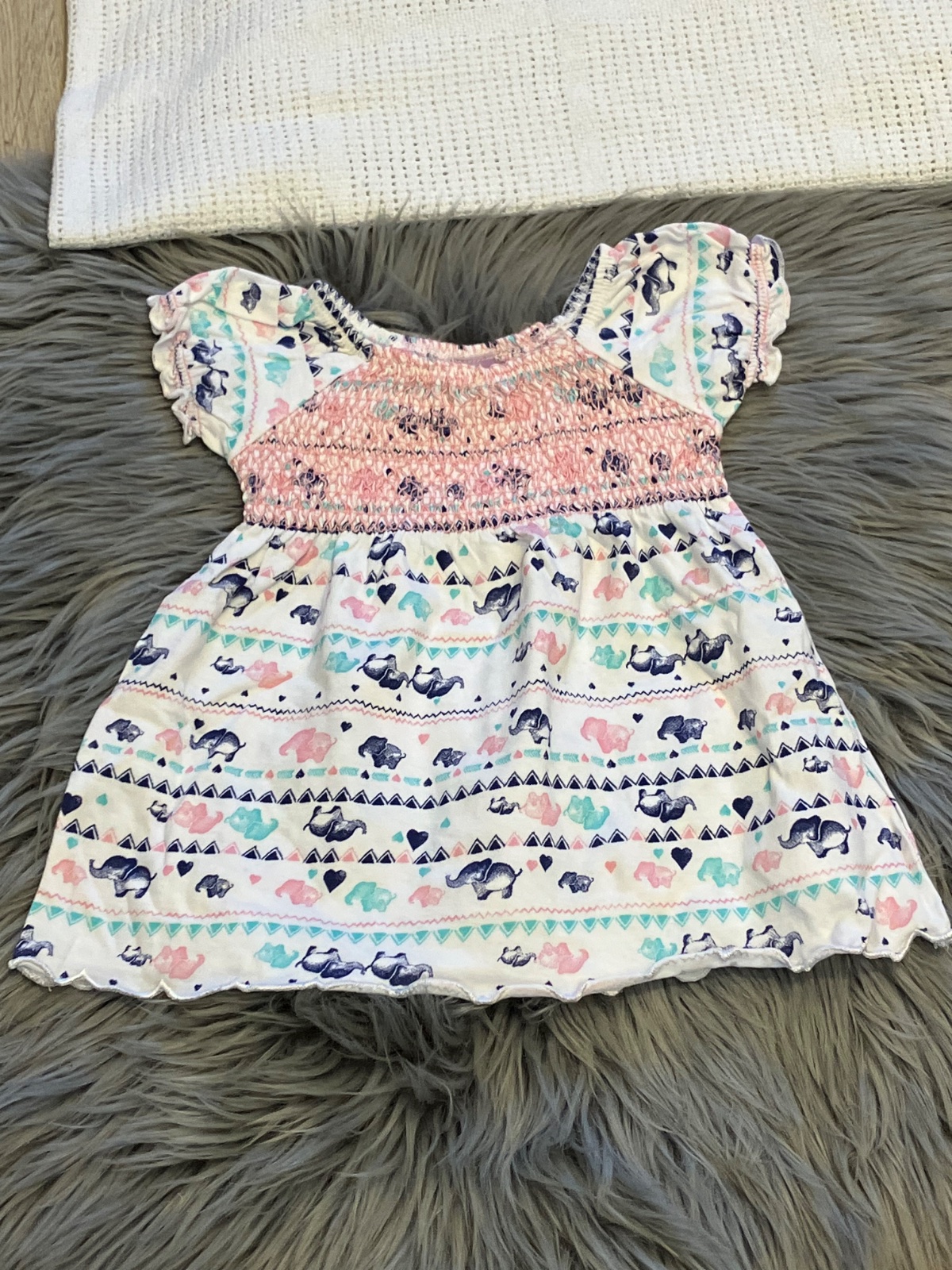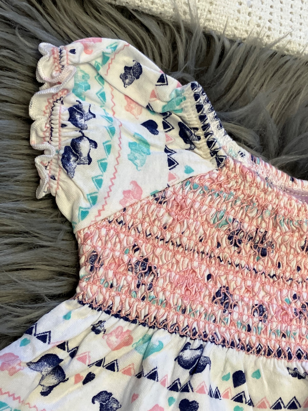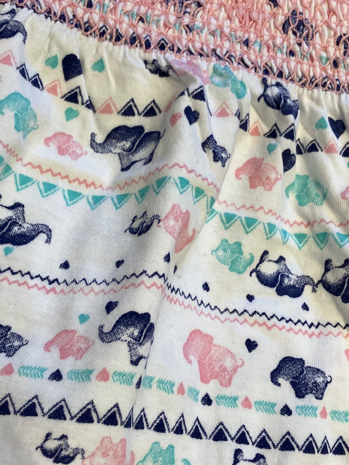 Dievčenské šaty vzorované s krátkym rukávom, so slonom a srdiečkami, elastické, farba bielo tmavomodro tyrkysovozeleno svetloružová, materiál 100%bavlna.