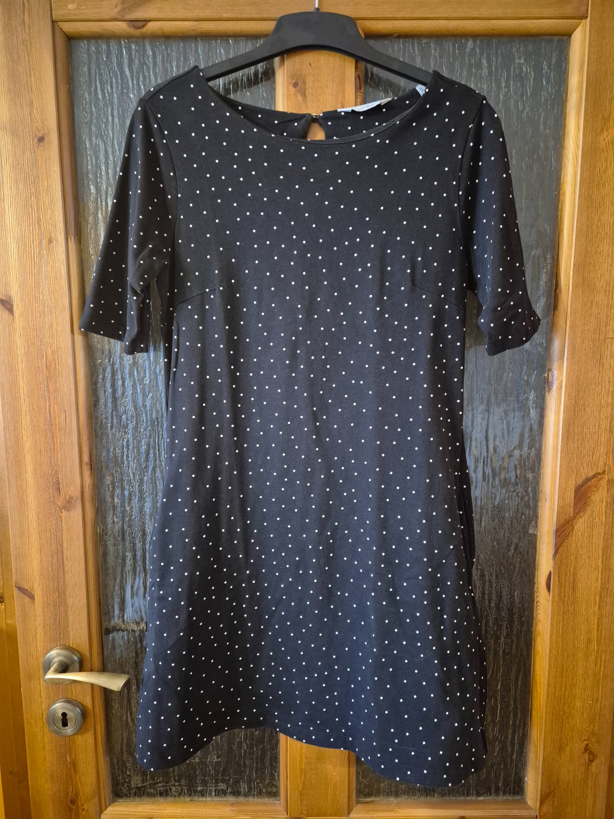 Predám čierne šaty s jemnými bodkami zn. Tchibo, veľkosť 36-38. 100%bavlna, vhodné na bežné nosenie aj na menej formálne príležitosti. Majú vrecká. Málo nosené vo výbornom stave.