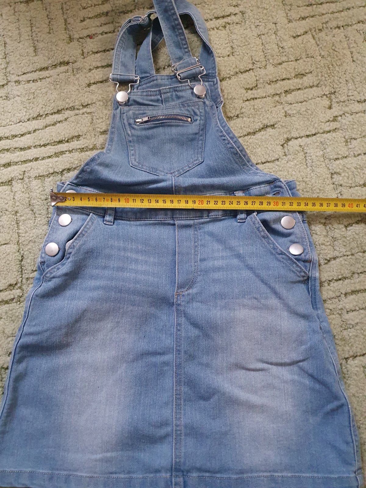 Velmi prijemne saty/sukna na traky.Makucka,trochu elasticka riflovina.Pas aj dlzka na foto.Velkost pisana S.Traky sa daju regulovat.