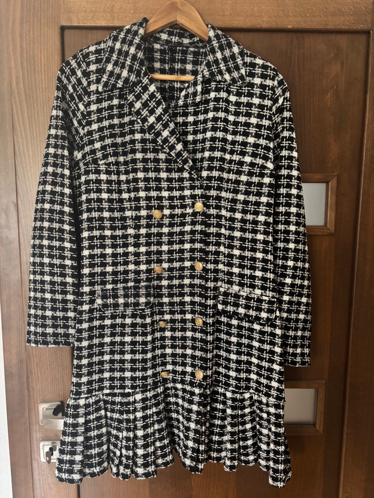 Výborný bezchybný stav 1xoblecene. Možno nosiť voľne bez opasku alebo s opaskom . Dlzka 95cm, sirka pod pazuchami 60cm